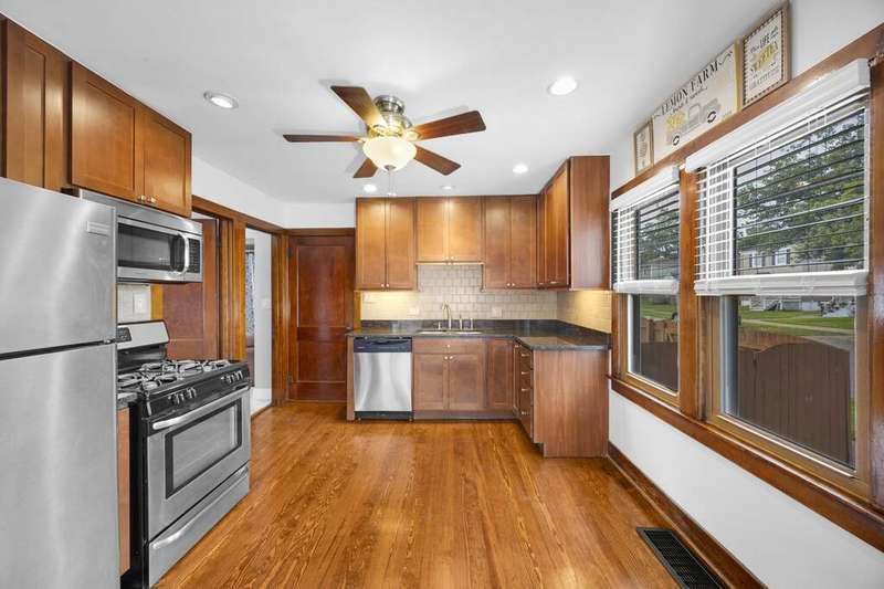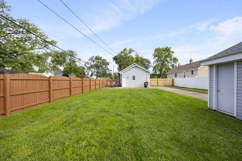 This Dollhouse is just waiting for you to move right in! Enter through the enclosed front porch with newer PVC handrails and newer vinyl flooring into this open concept Ranch home. Updated kitchen features granate counters, 42" maple cabinets, ceramic backsplash, under cabinet accent lighting and stainless steel/black appliances which are included. Full Bathroom Updated in 2018 featuring new vanity and luxury ceramic floor. Main floor features refinished Hardwood floors, new blinds on all windows and interior freshly painted-Aug. 25. Stanley Steamers vent and dry vent cleaning plus sanitized in 2025. Basement includes laundry room (Washer & Dryer-2018 & included), Bathroom with Shower and Family Room with dry bar. Interior Draintile-2008. Roof (tearoff) on House and garage Oct '24. New gutters with oversized downspouts. Furnace-2011, Central Air-2013, H20 Htr-2019. New thermostat. TV Mounts will stay. Exterior features concrete side drive to 6' ft privacy fenced back yard (Drive gate newer) to 1.5 car garage (new garage door opener being installed). Enjoy your evenings on the newer concrete patio. Exterior also includes security lights. Too cute to pass up.
