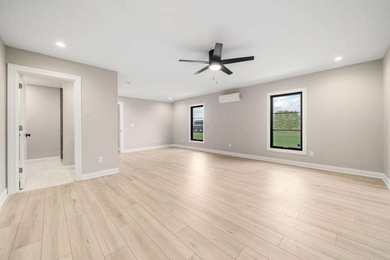 Behind a gated entrance and winding paved driveway sits this exceptional 27+ acre equestrian estate, a private sanctuary designed for horse lovers, trainers, or anyone seeking a truly one-of-a-kind property. Every detail has been thoughtfully crafted, from the rebuilt modern farmhouse residence to the expansive Amish-built arena and stunning black-fenced pastures. This 3 bedroom, 3.5 bath home is the perfect balance of modern design and farmhouse warmth. Each bedroom features its own private full bath, offering comfort and privacy for all. The open concept layout showcases light filled living spaces, soaring ceilings, and beautiful hardwood floors throughout. A sleek, contemporary kitchen overlooks the main living area, creating an ideal flow for entertaining or everyday living. The equine facilities are truly second to none. The Amish-built indoor riding arena measures an impressive 75' x 185' with 18' ceilings, constructed with Amish-milled wood and exceptional craftsmanship. A three-stall front addition (36' x 36') provides a dedicated space for horses and smooth transitions between the barn and riding arena. The barn features 7 new stalls (12' x 12'), cement aisle, wash bay, tack room and office, making this barn a true showpiece. There's abundant storage for hay and feed, along with two fenced paddocks and plenty of lush acreage to grow your own hay. The black, maintenance-free fencing ties the property together with a clean, timeless look. The sealed loop driveway conveniently connects the home, barn, arena and storage shed for easy access. Much of the acreage is gently rolling and beautifully maintained with farmable land that enhances both the scenery and income potential. Enjoy peaceful mornings watching the sun rise across open fields, surrounded by the quiet beauty of nature and the comfort of privacy. Likewise, taking in the sunset. This property offers endless possibilities, whether for boarding, training, events or simply living your equestrian dream.
