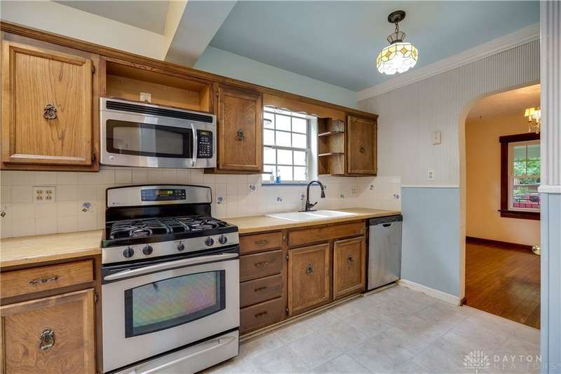Charming Home in Prime Oakwood Location ? Walk to Everything! Don't miss this maintained home nestled in the heart of Oakwood. After 25 years of cherished ownership, the seller is relocating to be closer to family?offering a wonderful opportunity for the new owner to make this home their own. The property offers easy main-level living. With the primary bedroom, walk-in closet and full bath on the first level. Additionally it has a nice size closet and wood floors. Enjoy the eat-in kitchen with direct access to a serene, blossoming backyard and patio?ideal for outdoor dining and quiet evenings. Room for a full size table, chairs and hutch. Walk-in pantry. All kitchen appliances stay. Plus a formal dining room which flows into the living room area. This area has lots of windows for natural sunlight. The upstairs bath is updated with a walk-in shower added by the seller. Rich hardwood floors and original wood trim adds timeless charm throughout the home. Additional highlights include a two-car garage with opener, rear parking pad, fenced yard, gardens and a full basement. Washer and Dryer stay with the home.