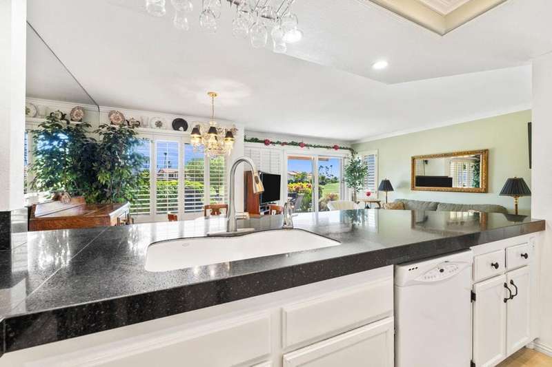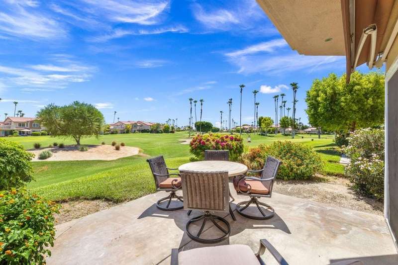 ? Just steps from the Indian Wells Tennis Garden, this condo offers more than just a home--it's a lifestyle. Enjoy dramatic fairway and mountain views from this golf course condo. The private patio features eastern exposure and an electric awning. This end unit model does not have a unit above and is light and bright. The kitchen features slab granite counters. Bath upgrades include custom tile enclosures and newer fixtures. Tile flooring in the main living areas. The bedrooms and closets feature raised panel doors. Energy efficient upgrades include Milgard vinyl windows and patio door, shutters and ceiling fans which combine luxury with sustainability. Decorated in warm neutral colors. Furnishings available. The inclusion of a 1-car oversize garage adds practicality to the package. The complex's amenities include 6 community pools and spa areas, to provide ample opportunities for relaxation and recreation. The added perk of UNLIMITED golf on a Ted Robinson designed par 3 course. Featuring tennis and pickleball courts that are well maintained. Now the area headquarters for Helix Disc Golf, enhances the lifestyle appeal. Low HOA dues covering essential services, cable, and internet make for worry-free living, while convenient access to shopping, dining, and transportation adds to the property's allure. Situated across from the Indian Wells Tennis Gardens, home of the Paribas Open, this property is perfect for either full-time residence or a luxury seasonal home. Overall, it truly offers a lifestyle of convenience and luxury, appealing to those seeking the ultimate in comfort and relaxation.