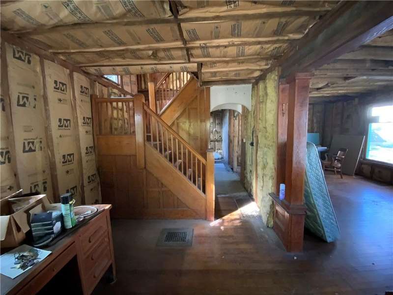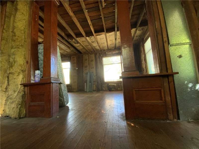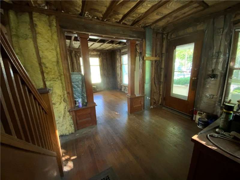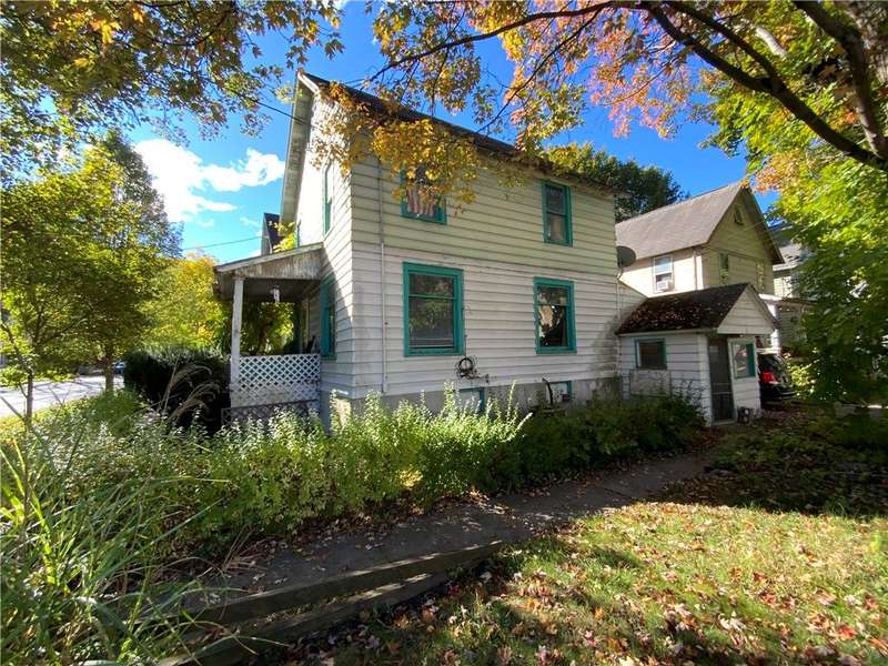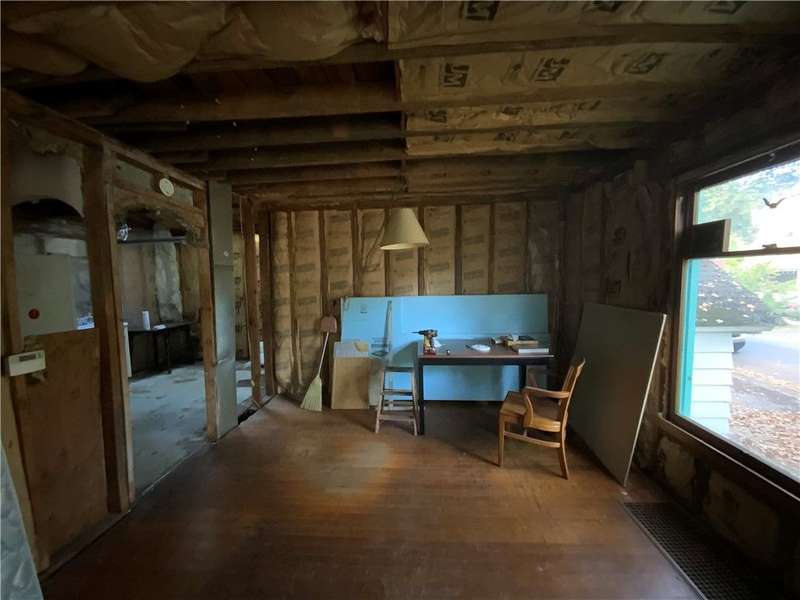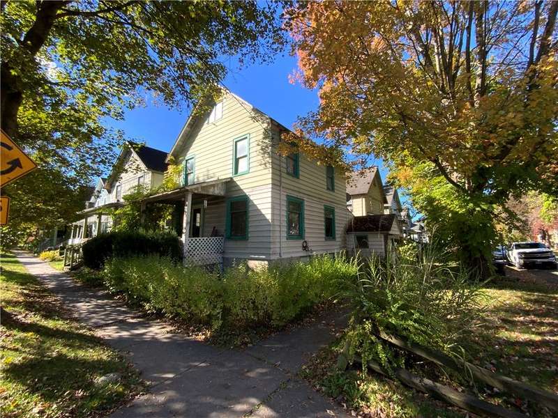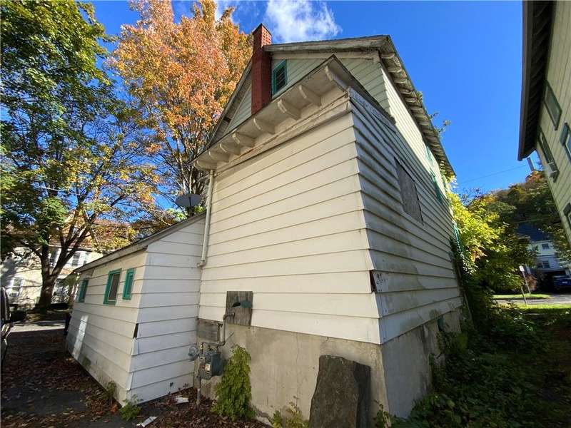 Here's your next project! The worst of the demo is already done. It's all opened up so you can see exactly what you're working with. Spend the winter in a warm house bringing this beauty back to life. A handsome (and practical) formal entry welcomes you to this home with wainscoting and wood columns that delineate the living area from the entry. The large windows in this corner lot means lots of natural light. Hardwood floors are in great shape. The electric panel has been updated and has a remote read meter. Large kitchen footprint. Upstairs are 3 bright bedrooms, 1 bathroom and a bonus 3rd floor space. Outside find an additional bonus space in the separate shop that has heat, electricity and plumbing (formerly a Barber Shop). This property has all municipal services- water, sewer and natural gas. By car it's just 13 minutes to the airport, 9 minutes from Cornell, 6 minutes to Ithaca College, 5 minutes to the Commons and 3 minutes to Wegmans. Plus it's walkable to restaurants, several parks, Six Mile Creek and public transportation. This house has tons or character and good bones and is ready for the modern touches that will make it highly desirable on the Spring market.