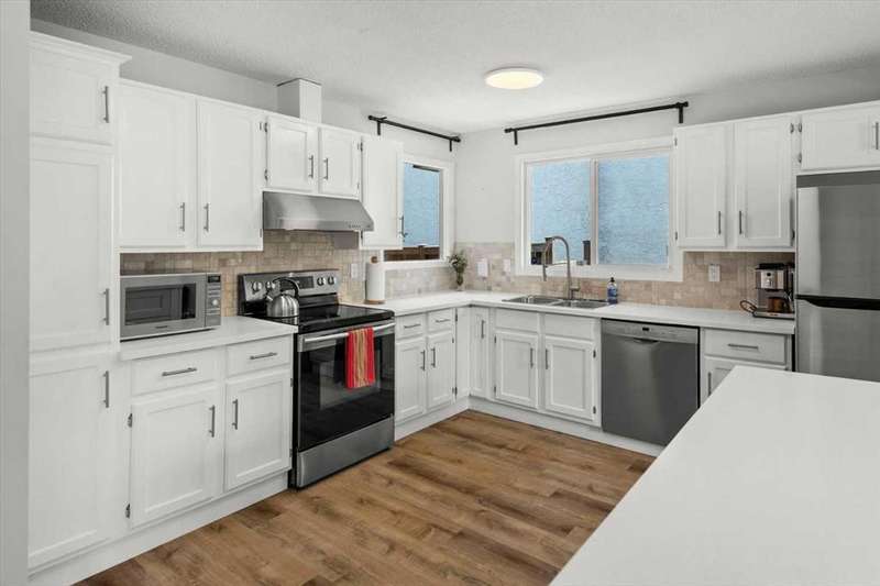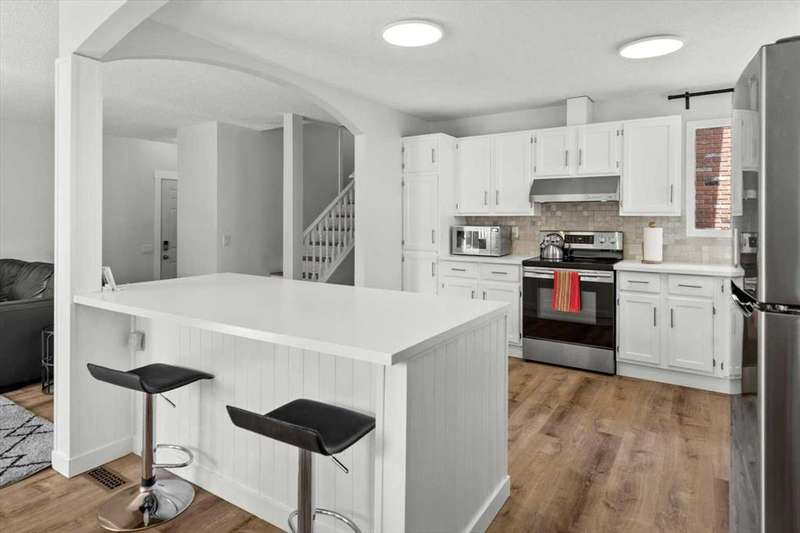 Hey Y'all! Welcome to 40 Bergen! Tucked away on a quiet cul-de-sac and backing onto lush green space, this fantastic 4-level split is ideally located in the heart of Beddington. As you enter the home you’ll immediately notice the many thoughtful upgrades throughout. The kitchen has been fully renovated, now featuring modern cabinetry, stainless steel appliances, tile flooring, and a stylish bright and functional layout. New vinyl plank flooring has been installed throughout both the main and lower levels, providing a sleek, durable surface that ties the living areas together beautifully. The main level also features a spacious and bright living room with south facing windows that seamlessly flows into the kitchen and dining area, perfect for entertaining or relaxing. Upstairs, you’ll find three generously sized bedrooms and two full bathrooms complete with vanities, tiled floors and showers, and medicine cabinets offering additional storage.The third level includes a large rec room with a floor-to-ceiling brick fireplace, a side entrance to the backyard, a renovated 2-piece bathroom, and a fourth bedroom, offering a fresh, updated space for guests or family members. There’s also a large laundry and storage room for added functionality. And the very lower level basement is ready for your finishing touches, an in-home gym or provides additional storage for your Christmas decorations and such. Additional updates from the previous owners include replaced windows, an updated roof, and an oversized double detached garage, ideal for extra vehicles or workshop space. Just 1.5 blocks from the off-leash dog park, 5 blocks to local schools, and only a few minutes’ walk to the amenities on Centre Street, the location offers unbeatable accessibility and low maintenance landscape. With easy routes to both Centre Street and Deerfoot Trail, commuting across the city is quick and convenient. This is a move-in ready home in an incredible location—don’t miss your chance to own a beautifully upgraded property with room to grow in Beddington! Book your showing today!