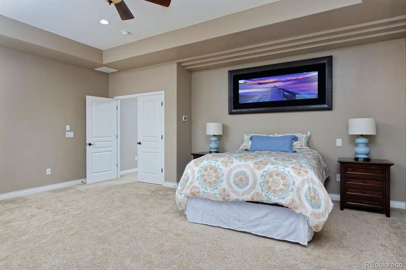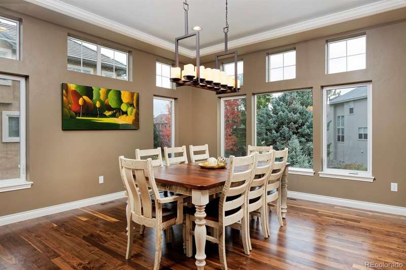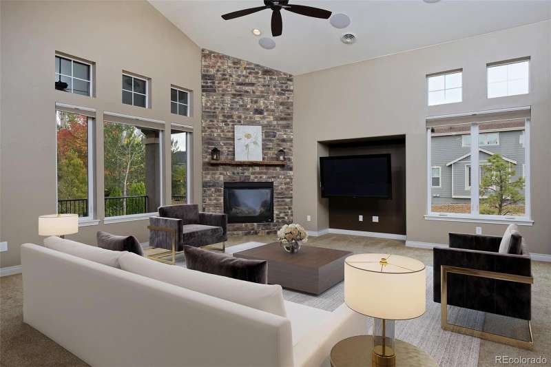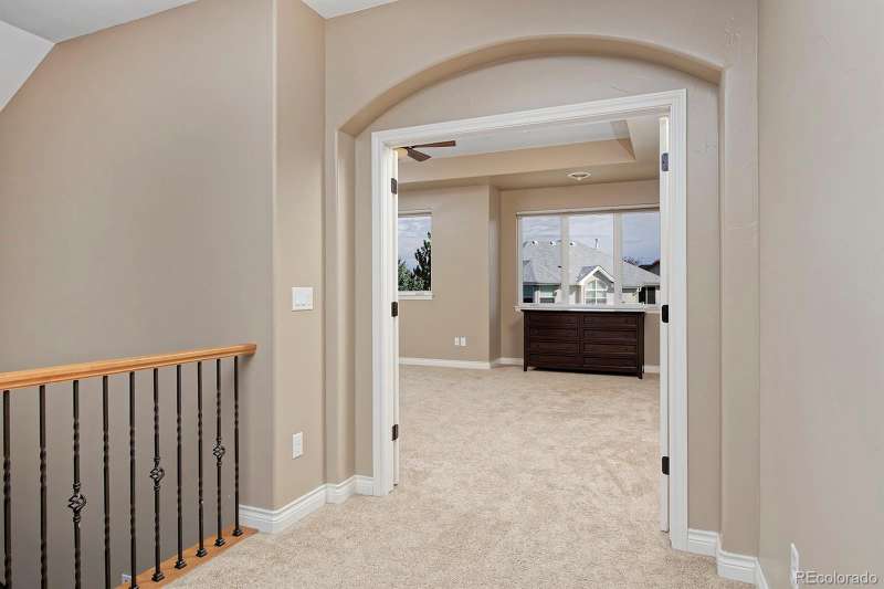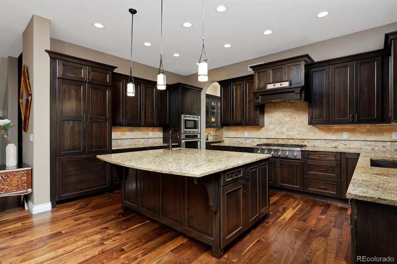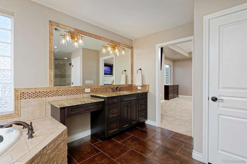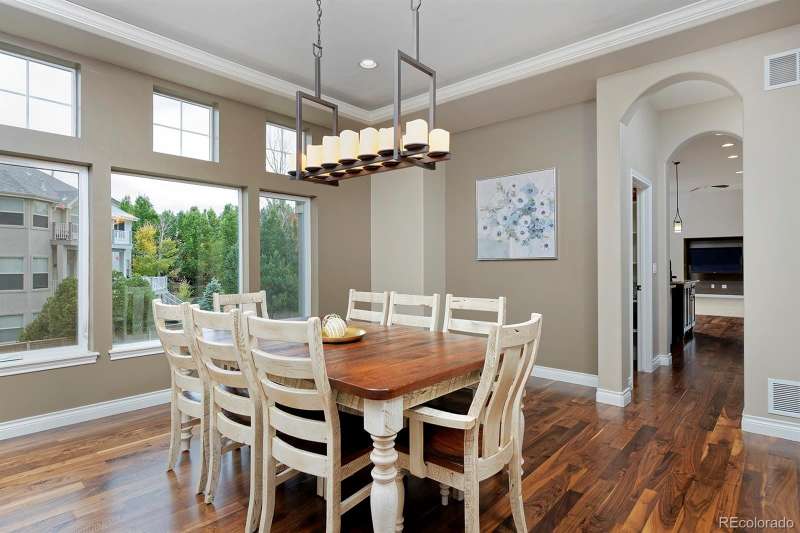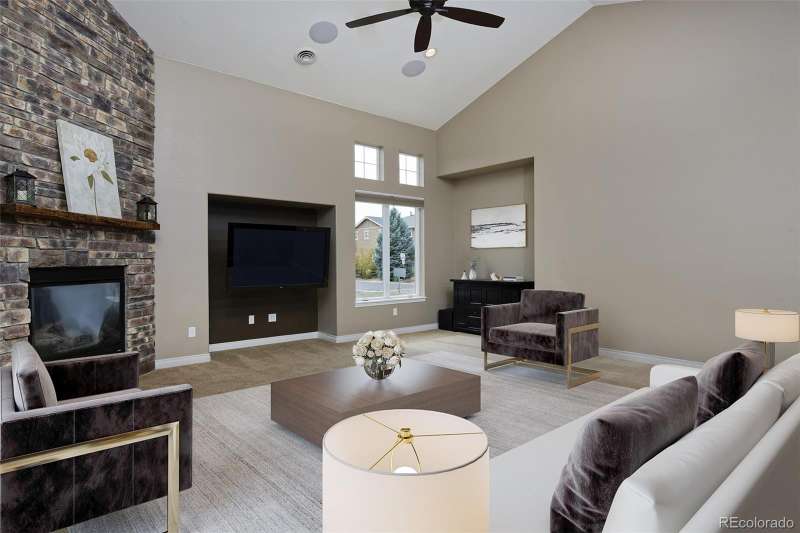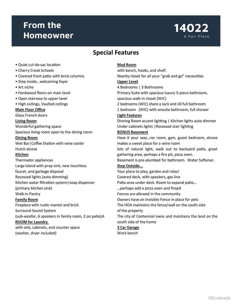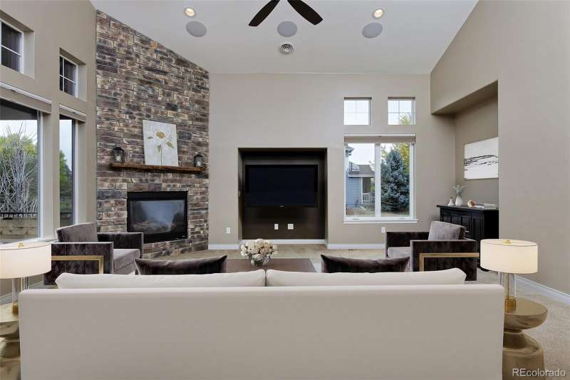 a Grand 4 bed, 4 bath home nestled in a peaceful cul-de-sac gives a welcoming reception with a covered porch surrounded by beautiful brick work. Kick your shoes off in the spacious foyer with the surprise of a lovely art niche to guide you in. Tucked to the side of the foyer is a main floor office with French glass doors. High & vaulted ceilings, custom details throughout the home give an opulent feeling. Stately kitchen has granite countertops & Thermador appliances. The main sink has a touchless faucet, soap dispenser & water filtration system. Large island also has a prep sink with touchless faucet. Other features include walk-in pantry, wet bar-coffee station with wine cooler & under cabinet lighting. The kitchen leads to an inviting covered patio overlooking the backyard. Enjoy surround sound inside & outside (sub-woofer, 6 speakers in family room, 2 on patio). Spacious living room adjoins the dining room featuring a hutch alcove & accent light in an elegant ceiling tray. The open & bright feel of the main living space includes a cozy family room with a fireplace with a rustic mantel & brick. Main floor laundry room with washer & dryer, NEW utility sink, plenty of counter & storage space. Main floor powder room & mud room with built-ins located in the garage entry wing. Open stairway leads to upper level with 4 Bedrooms & 3 Bathrooms. The roomy Primary Bedroom has a 5-piece luxury bathroom. Find 2 additional spacious bedrooms adjoined by a full Jack & Jill bath & the 4th bedroom has an ensuite 3/4 bath. Walk-out unfinished basement, water softener system, daylight windows, leads to a covered patio. Have it your wayrec room, gym, guest bedroom, alcove makes a sweet place for a wine room walk out to the backyard patio, great gathering area, perhaps a fire pit, pizza oven. 3-car attached garage with work bench. Nearby Valley Country Club (golf/swim) & Cherry Creek State Park, a great place to stroll & play! the Seller requires 4 hr. notice for showings.