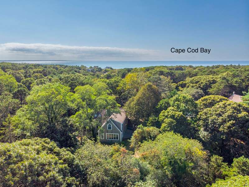 A separate deeded beach lot, incredible location, private! This home is approached by a lantern-lit driveway opening to a pretty setting and beautiful home. A path on the lot leads to your deeded Cape Cod Bay beach lot - .1 mile! Inside are two large living areas - living room with wood-burning fplc, and great room off kitchen that has lots of storage and counter space and stainless appliances. The expansive first-floor primary bedroom suite has cathedral ceilings, sitting area, loft with ladder, and an outdoor shower. This space has capacity for wheelchair use. Two bedrooms upstairs - one has a walk-in-closet plus living space that dramatically opens to the foyer below. Lower level includes rec space w/cabinets+counter. Outside, you will find a deck, brick patio, shed and arbor marking the path to the beach. There is a generator, newer furnace and hot water tank. The Title V septic has passed inspection. Adjacent to the Herring Run, there is easy access to Orleans via back roads