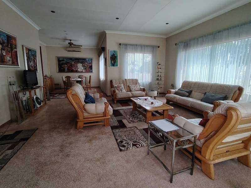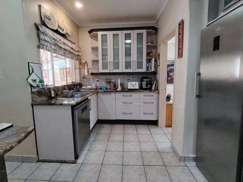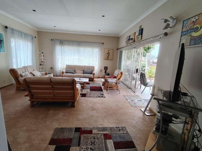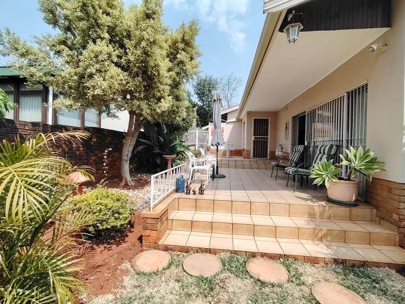 DREAM HOME IN SINOVILLE Talk about Charming, Spacious 4-Bedroom Home has only had one owner since 1965, come create memories as the second family. 4 Bedrooms (Main Bedroom + Ensuite) (Can be adjusted to a flat let with own entrance and patio) 2 Bathrooms (Ensuite) Spacious Kitchen ample storage space, and a breakfast nook Living room with Big sunny windows Dinning Entrance Hall Spacious Veranda from the Kitchen Laundry Room Double Garage Automated Double Carport Lovely Porch from the Living room Heated Pool Outside Toilet Spacious Lapa Borehole Store room The beautifully kept garden offers a peaceful escape. This home is a rare find with something for everyone.