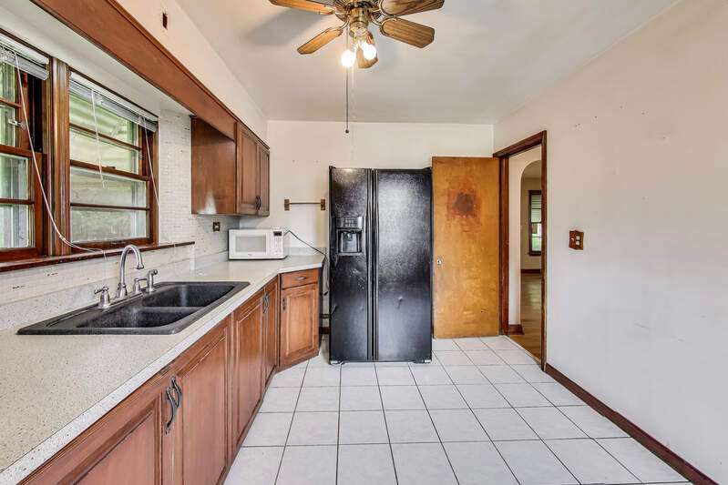 Rehabbers Rejoice! Three generations of this family have loved this brick charmer. Boasting 3 bedrooms and 1 1/2 baths, this faded beauty is primed for a makeover. Hardwood floors on the main level lead you to a welcoming eat-in kitchen, cozy living room, separate dining room, bright bedroom and sweet half bath. Upstairs, find 2 more spacious bedrooms and a light-filled full bath. Revel in the abundant storage throughout this hospitable home. The basement has plenty of potential. Your guests can gather at the original bar in the rec room. Nearby, a lone toilet poses the possibility of another proper bathroom. Storage space abounds in the adjacent mechanicals and laundry rooms. Gardening enthusiasts will delight in the back and side yards of this corner lot. Tuck your cars into the detached 2-car garage. Proudly perched on Oakton Street for 73 years, you can simply stroll to Oak Mill Plaza to shop at Jewel and Minelli's or grab a coffee at Starbucks. Easily zip to nifty Niles' library, schools, park district facilities, dining and shopping options. Only one family has ever occupied this heartfelt home. Now it's your turn. Welcome home! Estate sale-sold As Is.