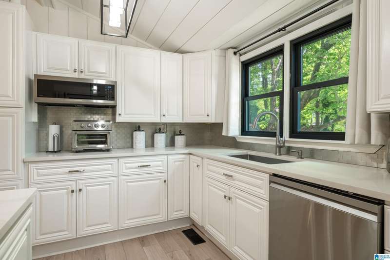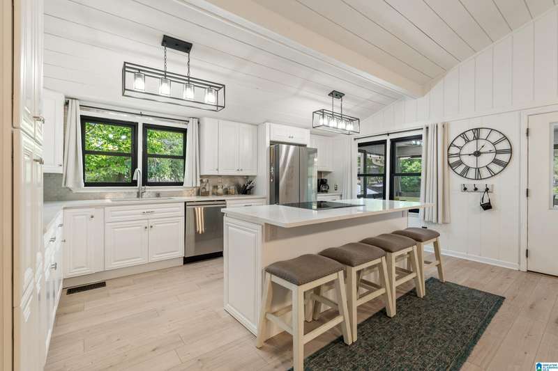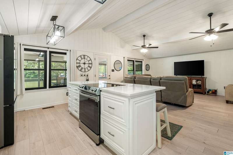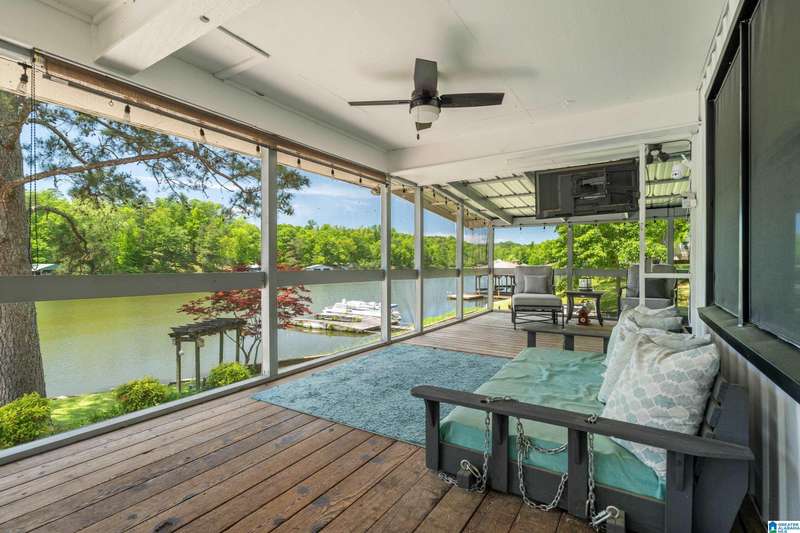 Year-round deep water on Highland Lake in Oneonta - no flood insurance required! Fully renovated in 2022, this 4BR/2BA home with office features new roof, windows, exterior doors, 2 Trane HVACs, 2 water heaters, flooring, interior and exterior paint, kitchen w/Samsung appliances, baths, lighting, electrical panels and more! Downstairs has 2BRs including a large primary with walk-in closet and adjoining office/nursery. Upstairs: 2BRs, bath, and 2nd living area. Enjoy your private boat launch, double boathouse w/lift, doc, swing and large screened porch. Detached carport fits 4 cars + boat trailer, plus extra parking. Fenced front yard resodded in spring - perfect for pets. Move in and enjoy lake life by summer!