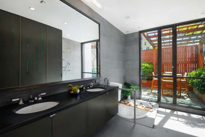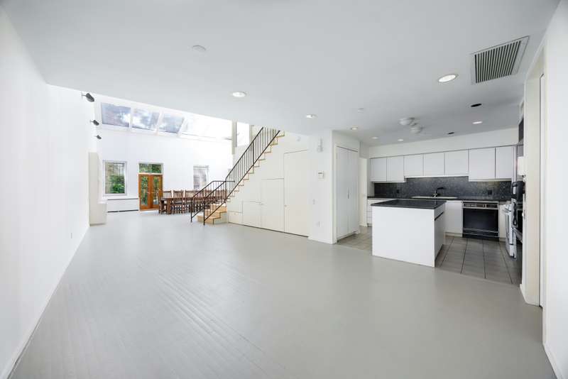 Beyond the garage is the ground floor duplex that could be a perfect guest apartment, art studio, or company headquarters OR it can be combined with the rest of the house into one magnificent single family home. (If part of a single family home the ground floor would make an amazing kitchen/great room open to the back garden.) Features of this lower duplex include three bedrooms and three bathrooms and ceiling heights of over 16 feet in the main space with light streaming in from skylights. This dramatic great room has plenty of space for both a living and dining area, as well as direct access to the tranquil garden. Also on this floor is the large chef's kitchen, as well as a bonus room that has an en-suite bathroom and washer/dryer. The mezzanine level features three oversized bedrooms and two bathrooms. ;