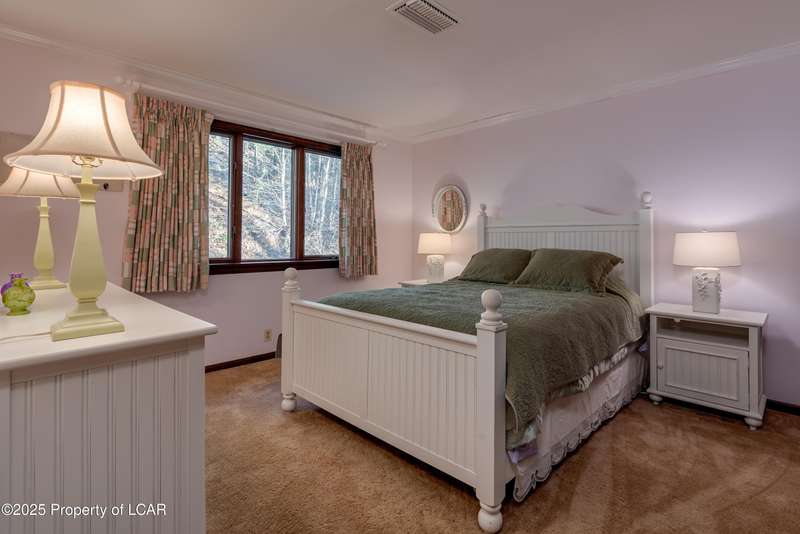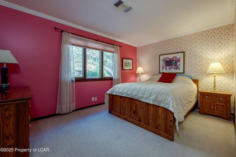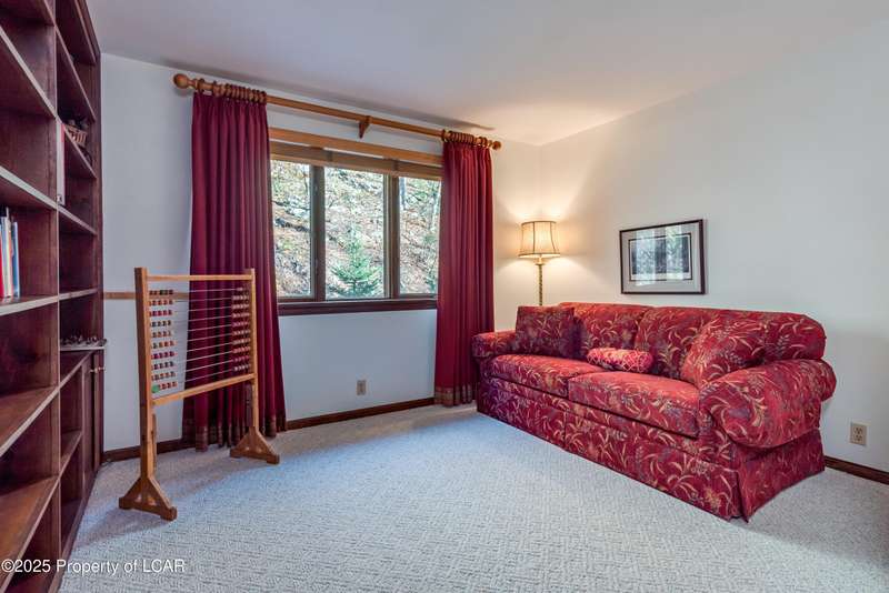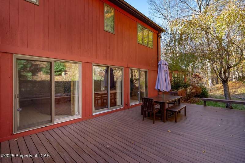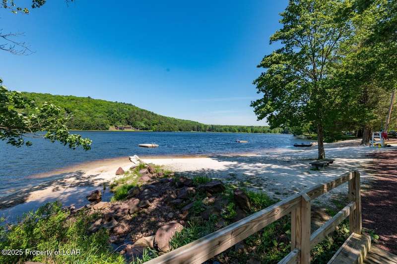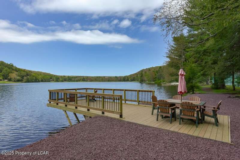 Lake community living at its finest where comfort meets elegance. This 5-bedroom home offers flexible office or library spaces, main floor master suite, guest room and laundry. Two gas fireplaces, sliding doors to a composite deck, and over 2 private acres create a peaceful haven a short walk to the lake. Welcome home. Convenient to Poconos skiing resorts, white water rafting, major metro areas.