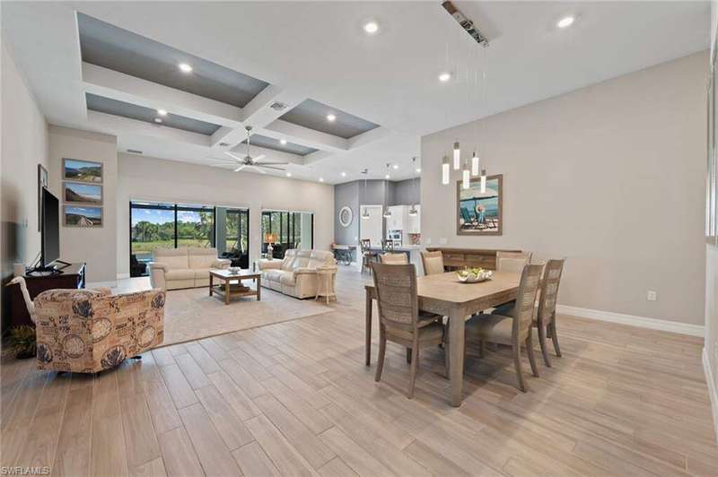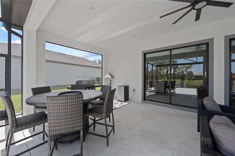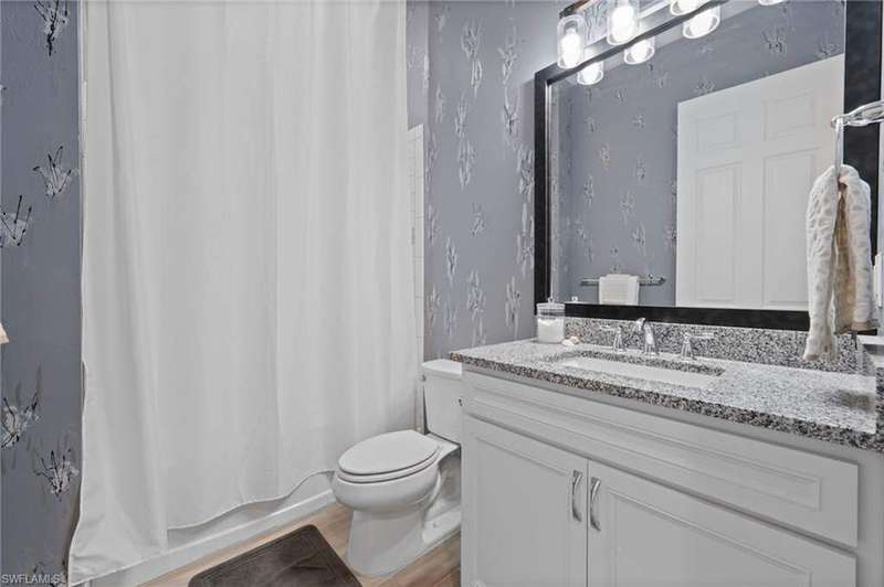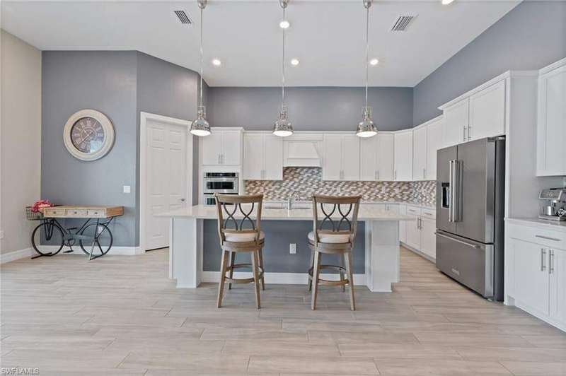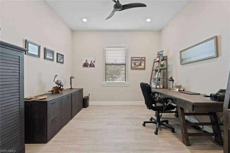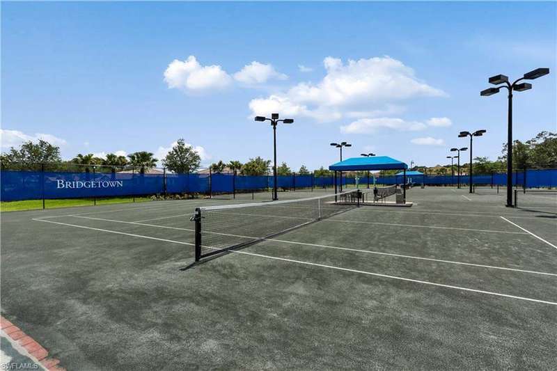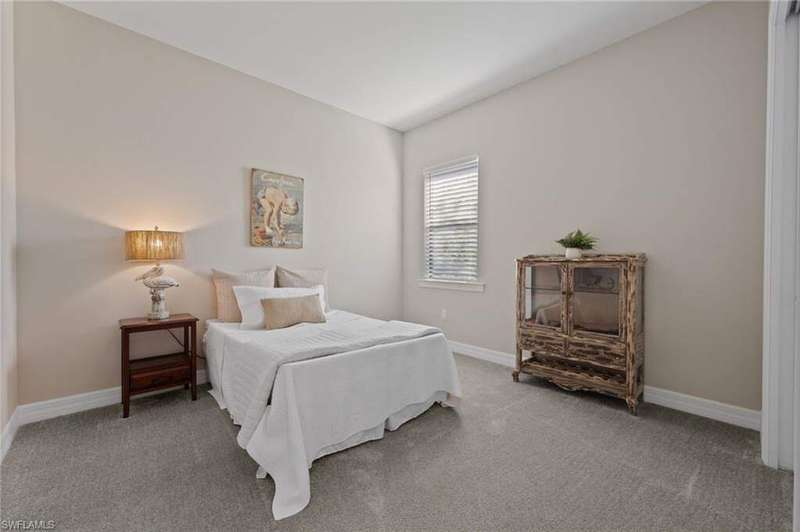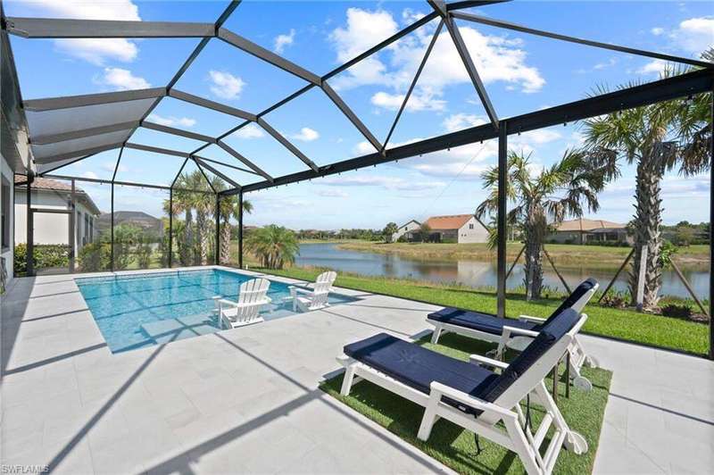 HOA FEES AND HOME WARRANTY COVERED FOR THE FIRST YEAR SO YOU CAN START ENJOYING THE SWFL LIFESTYLE TODAY WORRY FREE!! 2021 PULTE LAKEFRONT HOME WITH CUSTOM POOL! Located on a quiet cul-de-sac in the gated, amenity-rich community of Bridgetown-NOT in a flood zone-this popular "Stonewater" floor plan offers 2,852 sq ft of beautifully upgraded living. With 3 bedrooms, a den/flex room, 3 baths, and a 3-car garage, the home showcases over $235,000 in builder and post-closing upgrades. Enjoy soaring 10-12' ceilings, 8' doors, LED lighting, level 4 tile throughout the main living areas, remote controlled window treatments and an epoxy-finished garage. The gourmet kitchen features 42" white cabinetry with pull-out drawers, quartz countertops, a large island, stainless KitchenAid appliances, and an elegant wood canopy vent hood. Step outside to a stunning lanai with a brand-new heated custom pool (2025) featuring a tanning ledge sun shelf, a pool enclosure with super screens and a picture window for unobstructed views, and white honed marble decking-cool underfoot and gorgeous year-round. The owner's suite includes a large walk-in closet and a spa-style bathroom with dual vanities and a floor-to-ceiling tiled shower. HOA fees include lawn care, irrigation, security, amenity center, cable and internet. Enjoy resort-style amenities: two pools, spa, tennis, pickleball, bocce, fitness center, playground, fire pit, BBQ pavilion, and miles of landscaped sidewalks. Plus, you're just minutes to RSW, shopping, dining, and entertainment-THIS is the lifestyle you've been waiting for! Ask you agent for the full list of upgrades and schedule your showing today!
