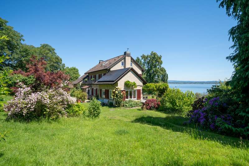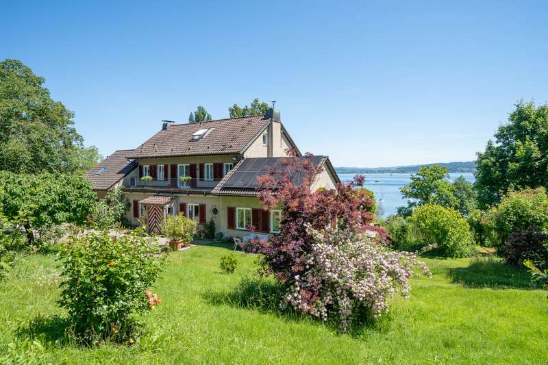 Immerse yourself in a world by the water - quiet, romantic and full of possibilities. Welcome to one of the most enchanting places on Lake Constance: this extraordinary property of approx. 2,627 m² is located in Litzelstetten, nestled between water and nature - a retreat full of history, charm and a unique quality of life. The property is home to a charming apartment building and offers a wide range of possible uses. As a spacious family home, a retreat for several generations or a combination of living and working. This beautiful apartment building offers space for individual design - with a view of the lake and surrounded by mature trees. The apartment building, built in 1936 with a total living space of approx. 320 m², was extended in 1986 and has 12 rooms and 4 bathrooms spread over three levels. You have a fantastic view of the lake from every room. The multi-family house is well maintained and conveys a well-kept, individual charm with many years of family tradition. Here you can either realize your dream home or replace it with a new retreat. According to the land register, a further 80m² can easily be converted here. There is also a former stable with a hay barn, which is used for garages and workshops and has potential for expansion. The outdoor facilities include a generously designed garden, which offers plenty of space for outdoor leisure activities and relaxing hours in a natural environment. . Established trees frame the property on the lake side and create intimacy with the neighbors up the slope. A variety of design options leave room for individual ideas and wishes. The property also has private access to the lake via this plot, offering you maximum exclusivity and freedom. Enjoy morning swims in the crystal-clear water, relaxing hours on the shore or romantic sunrises with a view over Lake Constance - right on your doorstep. This property is ideal for families who want to live generously in a rural setting or for investors who want to exploit the potential of an apartment building. With densification in the adjacent street section, even more development will be possible on this plot in the future. The floor plan offers flexibility for different living concepts, be it living with several generations under one roof or using parts of the property to rent out. Not only people live here - but also the moment. Contact us for more information or to arrange a viewing to see the features and possibilities of this exceptional property for yourself. Please understand that we will only consider inquiries with full contact details and a brief proof of creditworthiness or proof of financing in order to ensure a trustworthy and secure process for all parties involved.