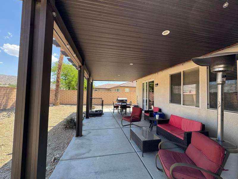 Back on market !!! This is your second chance.Property has been Appraised at ($515,000.00).Ready to Welcome you to another great opportunity to be a part of such a pristine community of Talavera. This well maintained ''Florencia Model'' Offers 4 Bedrooms 2.5 Bath. Move in ready! Walking into this home you will find a large open family living area with Tile and laminate flooring throughout the home. A beautiful bright open kitchen with granite slab countertops that open up to share a family living/dining area with fireplace.Lots of sunlight & window views from every room.All Bedrooms are an immense size, especially the large master bedroom.Which includes dual walk in closets for his & hers, along with dual vanity sinks with a large shower/tub. A low maintenance backyard that offers a large covered patio with lots of room to enjoy& entertain. Amazing views of the Mountain hills right behind. Still plenty of potential room for adding a Pool Or additional future ADU. As this lot is over 9000 Sq ft! This property features economical desert landscaping in front/ backyard.You will love the Garage! It's a masterpiece with epoxy floors to use as creative workspace or to set up your own personal gym.This is a great family home close to all schools or the perfect rental. Only just a few minutes away from shopping centers & the new Acrisure Arena, Indian Wells Tennis Gardens & the famous Coachella Music Festival. Indio Is known as the world's 'City of Festivals'.Everything is close-by.Easy Access to the 1-10 freeway. Come & see for yourself today!