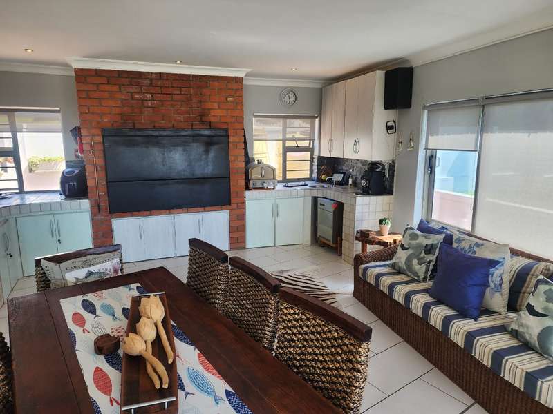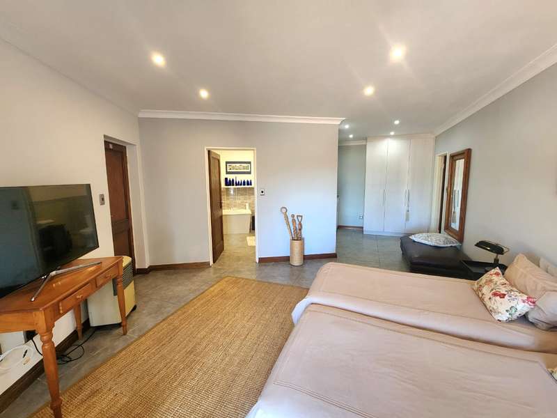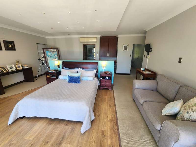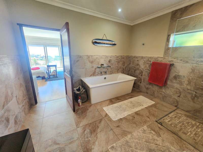 **Exceptional Luxury Residence in the Heart of Jeffreys Bay** Nestled in the prestigious heart of Jeffreys Bay, this magnificent multi-level residence spans an impressive 748sqm, offering unparalleled luxury, sophistication, and comfort. Designed with meticulous attention to detail, this home showcases exquisite craftsmanship and high-end finishes, including the unique Carrol Boyes door handles that add an extra touch of elegance. **Key Features:** - **Security & Efficiency**: Equipped with a state-of-the-art CCTV camera system, a walk-in safe, and two inverter systems, this home ensures both security and energy efficiency at the highest level. - **Entertainer's Dream**: The main level is a true entertainer's haven, featuring an open-plan kitchen fitted with top-of-the-line appliances, an entertainment lounge with a built-in BBQ, a guest toilet, and a spacious patio that overlooks the stunning infinity splash pool, perfect for hosting family and friends. - **Master Suite Retreat**: The master bedroom offers a serene escape, with a luxurious en-suite bathroom complete with heated towel rails, and direct access to a private balcony. A gas fireplace in the open-plan lounge, dining, and TV room creates an inviting atmosphere for cozy evenings at home. - **Additional Bedrooms & Bathrooms**: Venture up to the top floor to discover two additional bedrooms and bathrooms, providing ample space for guests or family. - **Ample Storage & Utility**: The ground floor features a large garage with space for up to four vehicles, an additional double garage, a wine cellar, and a workroom, ensuring all your storage needs are met with ease. - **Self-Catering Flat**: For added flexibility, the ground level includes a self-catering flat with private access from the main house—ideal for guests or as an additional rental income opportunity. - **Beautiful Outdoors**: The manicured garden and outdoor spaces are perfect for relaxation or hosting gatherings, offering a peaceful oasis right at your doorstep. - **Additional Features**: 3 water tanks with pump connections, security beams, and a walled and gated perimeter further enhance the security and practicality of this stunning home. **Location & Lifestyle:** With its prime location in Jeffreys Bay, this residence combines the best of both worlds—luxury living with easy access to all the amenities and attractions of this renowned coastal town. Don’t miss the opportunity to make this your dream home! Contact us today to schedule a private viewing and experience firsthand the epitome of sophisticated living.