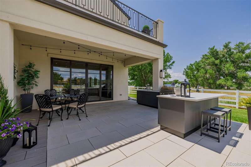 Discover this stunning home nestled on a private, gated street, offering breathtaking views yet conveniently located near Arapahoe and Parker Road. This home was designed for both comfort and luxury, featuring high ceilings, and an open main floor with a spacious 12-foot kitchen island. It is truly perfect for entertaining and daily living with the built in outdoor kitchen. The home was designed with longevity in mind, there is already elevator shafts and closets ready to install a beautiful elevator. The primary suite has an oversized walk-in closet with an island for additional storage. The primary bathroom includes a luxurious steam shower, a large soaking tub, and two separate toilet rooms. The other two bedrooms have walk-in closets and en-suite bathrooms providing ample space and privacy for family and guests. The expansive unfinished basement offers high ceilings, plumbing rough ins, and great potential to add more bedrooms, a bathroom, and additional living areas, you can customize the space to fit your specific needs. With a gated private street, this home offers exclusivity and tranquility, all while being close to the natural beauty and minutes to city amenities.Buyer Incentive: Please contact our preferred lender for a $10k lender credit towards rage buy down or closing costs.