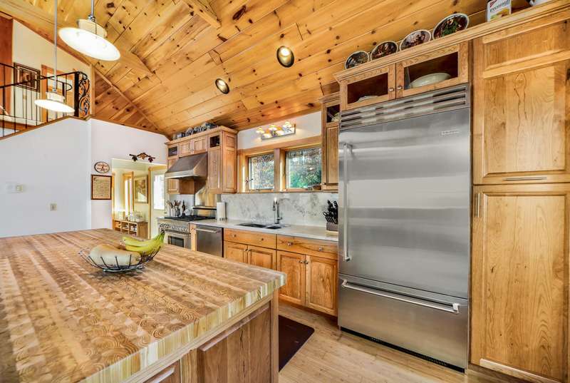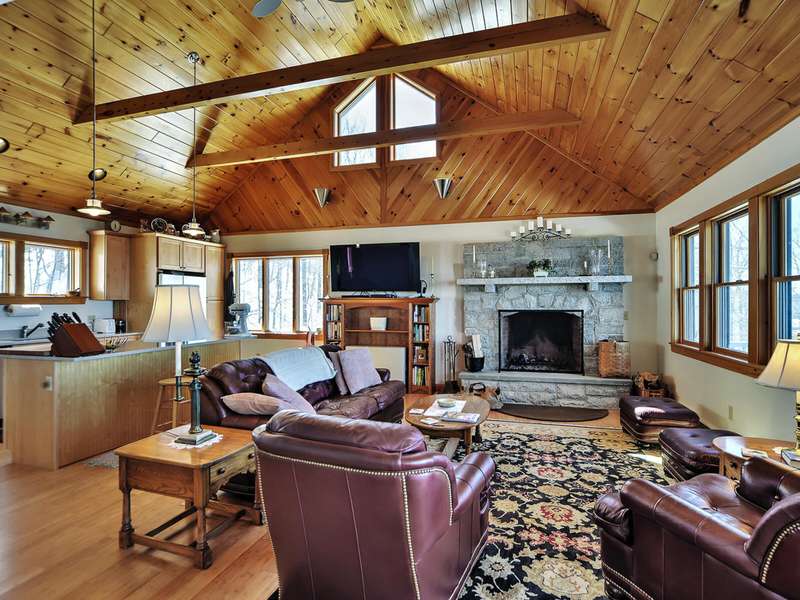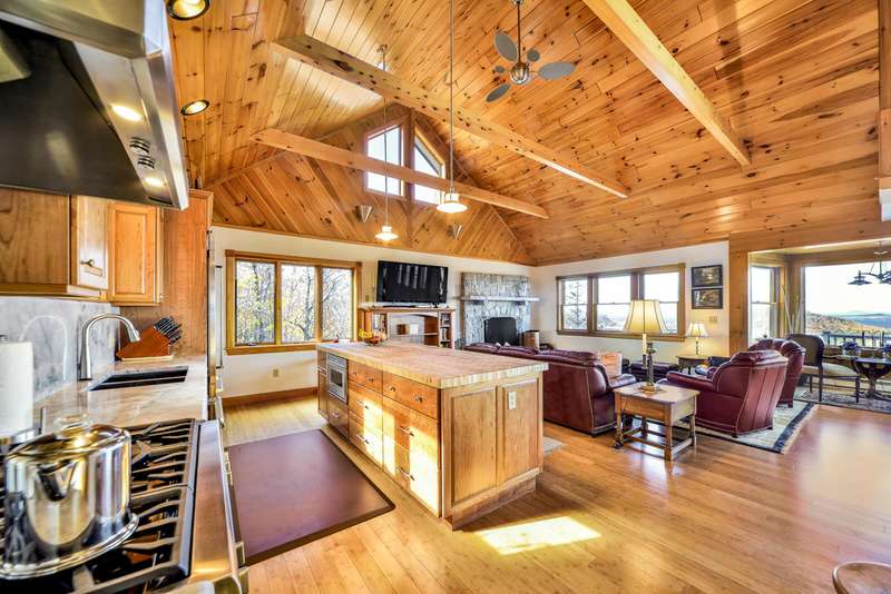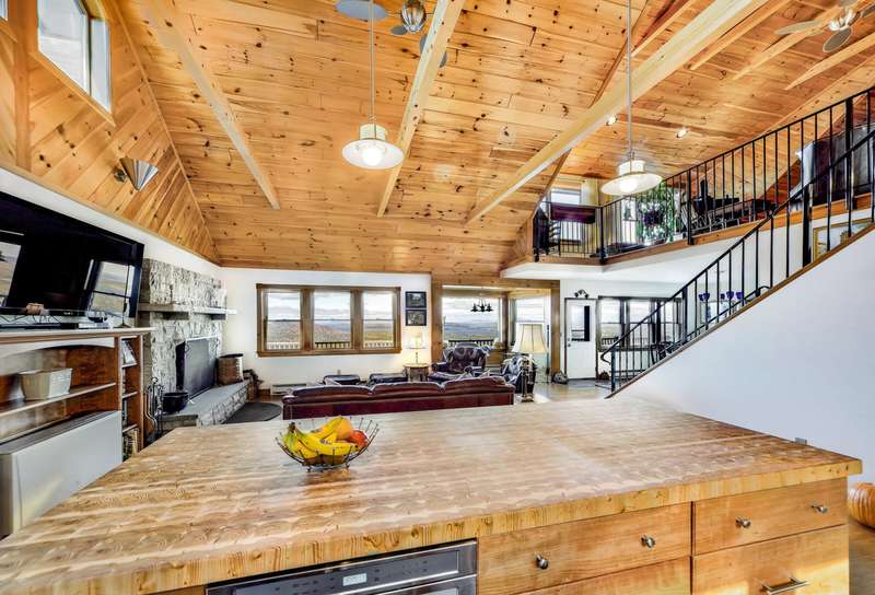 Enjoy year-round breathtaking panoramic views of Moosehead Lake and the mountains from pretty much every room of this custom-built beauty. The owners have done extensive updates to this beautiful one-of-a-kind contemporary home that is situated on 5 private acres. Step inside the main level from the 60-foot deck and be wowed by vaulted ceilings and bamboo flooring throughout and a dream kitchen.The great room features hand-cut granite wood burning fireplace, remodeled chef's kitchen with top of the line appliances including a Thermador Professional six burner gas stove, dishwasher, under-the-counter microwave and commercial subzero Blue Star refrigerator. The island countertop was imported from Cape Breton, Nova Scotia which was crafted from hand-cut Larchwood. The main living area features formal dining, living room, guest bedroom, bathroom and office. The loft includes four 10 ft. high custom built-in bookcases and large sitting area with reading nook that leads into the master ensuite. The lower level can be entered from the 2-car garage and is ideal for entertaining with its own pub, game room, wine cellar, laundry room, bathroom and pellet stove for those cold winter evenings. Follow the driveway to a two-story fully insulated and heated 22' by 26' garage with bonus space upstairs with work shop, exercise room and additional storage. You will appreciate the Kohler 20kW standby whole house generator on the rare occasion that the power goes out, also an additional gas-powered generator. With 5 owned propane tanks - one 1000 gallon for house, two 100 gallons for Kohler generator and two 100 gallons to heat the detached garage. In addition, the entire home has electric baseboard heating with 10 heating zones. High-speed fiber internet makes working from home ideal. Just minutes to charming downtown Greenville. Offered at $849,900 by Sally and Darryl Harvey of Maine Outdoor Properties of Realty of Maine. Contact 207-653-1555 for additional information.