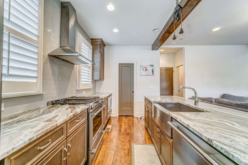 Step inside this stunning Charlotte Park home where modern design meets everyday comfort. The open-concept layout creates an effortless flow between the kitchen and living spaces--perfect for both entertaining and daily living. The kitchen features sleek finishes, ample counter space, and a large island that opens to the inviting main living area, accented by striking ceiling beams that add warmth and character. Rich hardwood floors extend through every room, creating a seamless and sophisticated feel. The primary suite offers a peaceful retreat with a spa-inspired bath featuring dual vanities and an oversized tile shower. Thoughtful details include plantation shutters, high-end finishes, a built-in tornado shelter, and an attached two-car garage. Ideally located in Nashville's sought-after Charlotte Park neighborhood, this home offers convenient access to The Nations, Sylvan Park, and downtown. The existing loan is ASSUMABLE at a 2.75% interest rate, providing an excellent financing opportunity for qualified buyers.