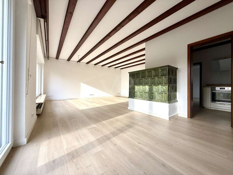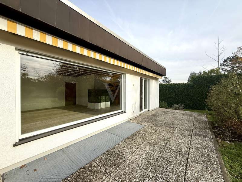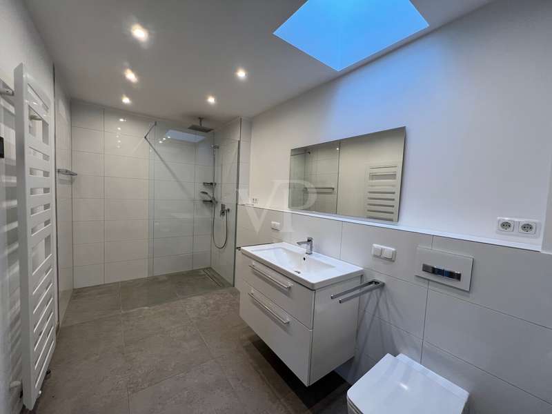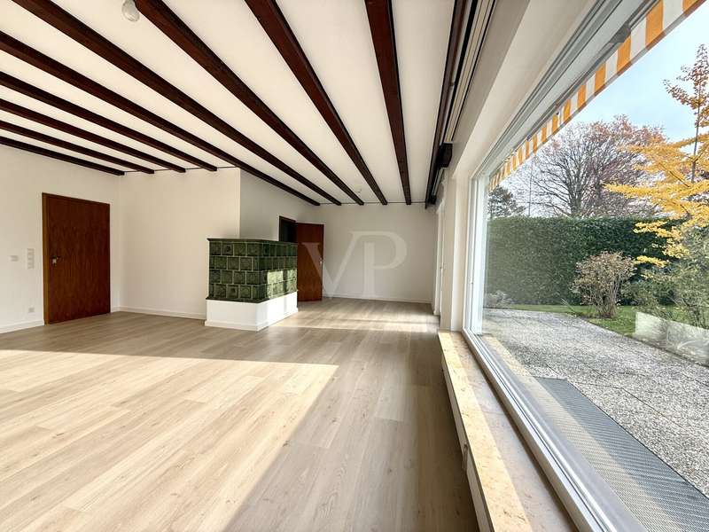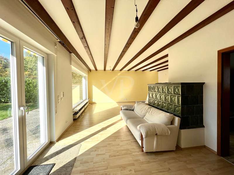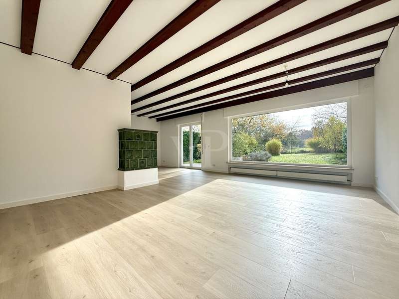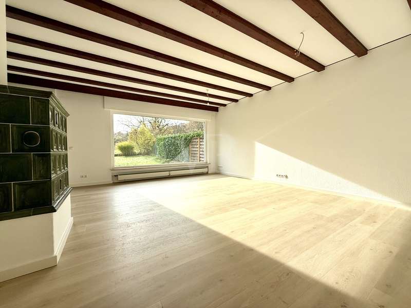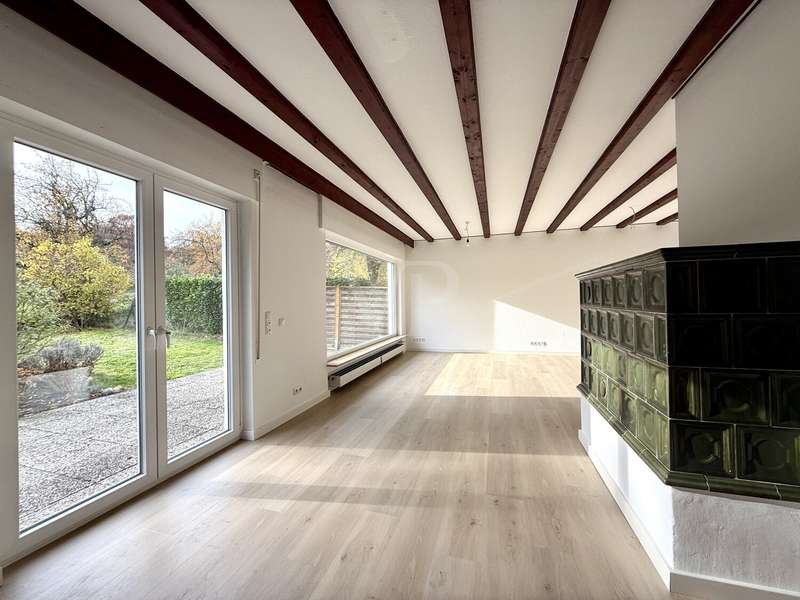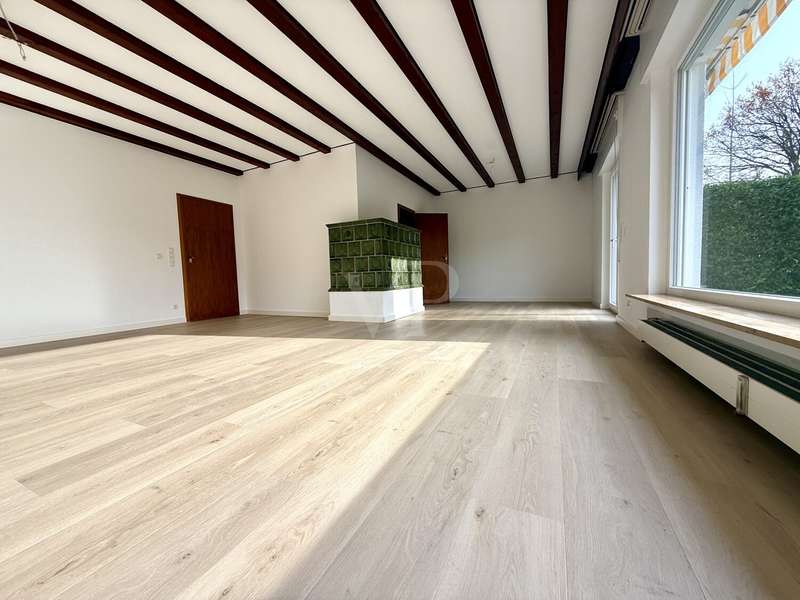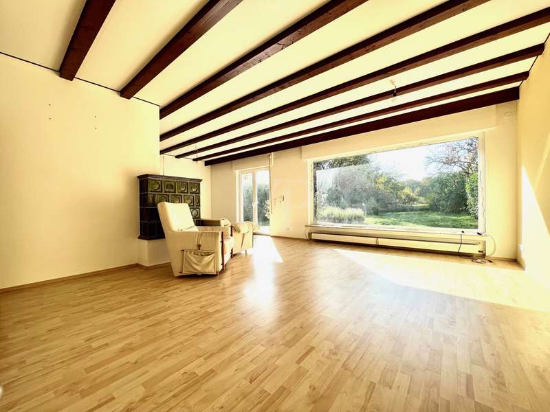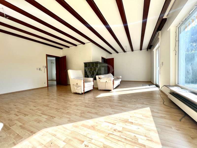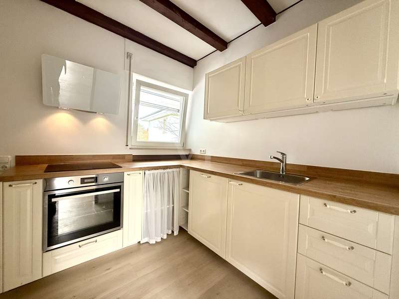 This beautiful two-room apartment is situated in a fantastic location right next to the orchards of Kelkheim Münster. The surrounding area is characterized by imposing villas with large gardens, bordering on nature. The apartment is located in a part of an attractive bungalow. The feeling of living in your own home is not only conveyed by the separate entrance, but also by the separate construction from the main building and the fantastic private garden. This home is ideal for people with high standards and an affinity for nature. You enter your new home via a spacious and airy hallway, from here you can access the separate kitchen as well as the spacious living and dining room. This forms the center of the apartment and impresses with large window fronts and a wood-burning tiled stove, which provides cozy warmth. An equally spacious sun terrace with awning will delight you in the summer months. The apartment also has a bedroom with fitted wardrobes and a refurbished bathroom with walk-in shower and natural light via an electrically operated skylight. Sufficient parking spaces for your car can be found directly in front of the house. We look forward to hearing from you personally.