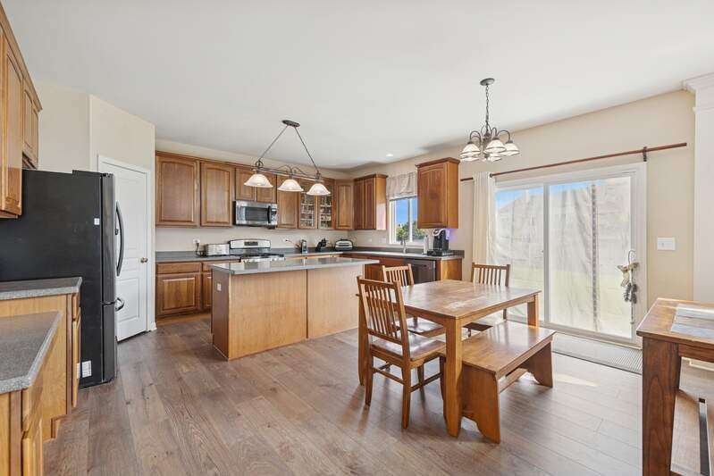 Updated Birmingham Model in Augusta Villa. 3 Car garage! Dramatic two story family room with fireplace. All new luxury vinyl flooring. Open modern floor plans with kitchen that opens to the family room. The kitchen has a island, some updated appliances & convenient landing desk. Lots of natural light! Center entry with form living room/office & dining room. Dry bar off the dining & kitchen. 1st floor laundry. Rare 1st floor bedroom & full bath. 4 spacious bedrooms. Luxury primary bath & walk-in closet. New carpet. Full unfinished basement with roughed in plumbing for another bath - lots of rec room potential. Huge fenced in yard. HVAC 10 years old.