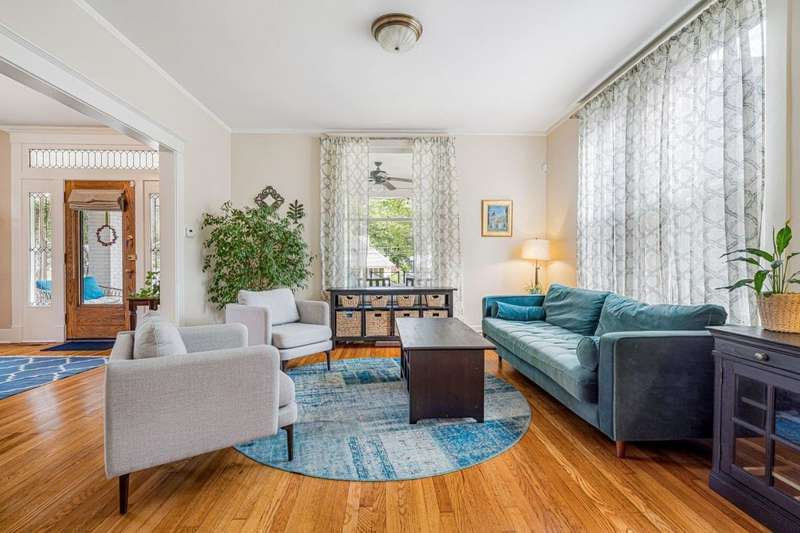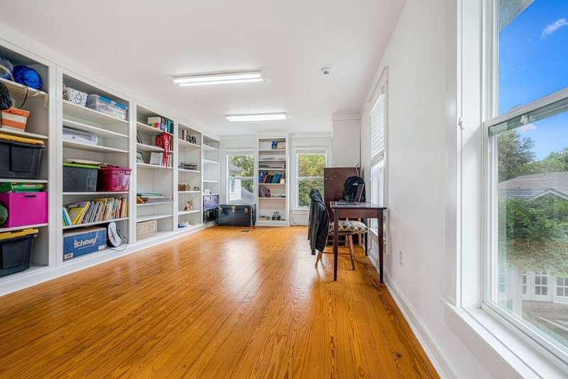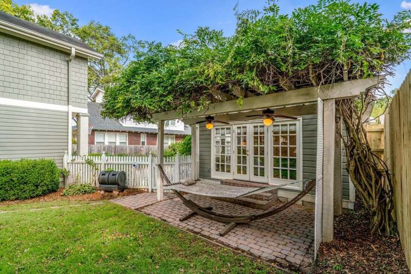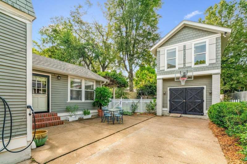 Significantly updated Midtown home has all the right spaces & location you want on a fantastic block only a short walk from restaurants, shops, & more. Enjoy visiting with neighbors on the front porch, or cooking a fabulous meal in the spacious & sunny chef's eat-in kitchen. Other features include an entry hall, charming living room & dining room, a comfortable den with built-ins & French doors to the patio & yard, a primary bedroom w/private double vanity/separate tub & walk-in shower bath, 4th bedroom or playroom on the 3rd floor, a laundry room, plus a totally renovated and super cool guest house/office/shop with its own air system & 1/2 bath! New upstairs HVAC, recently replaced roof are some of MANY recent updates! Fabulous new price! ***Open Saturday, November 15 1-3***