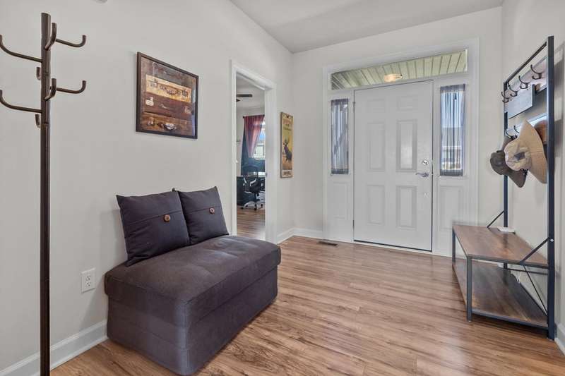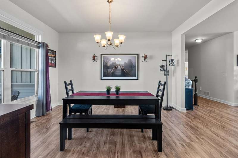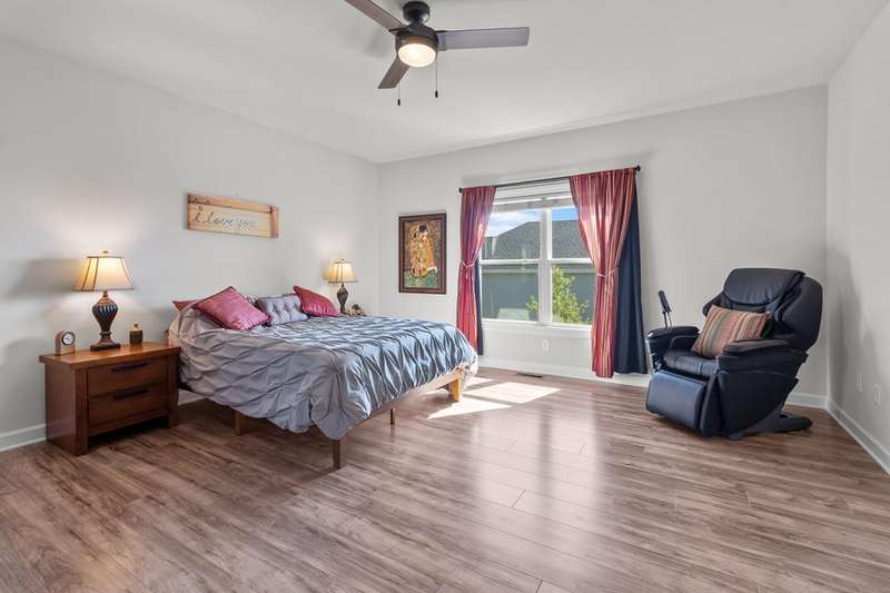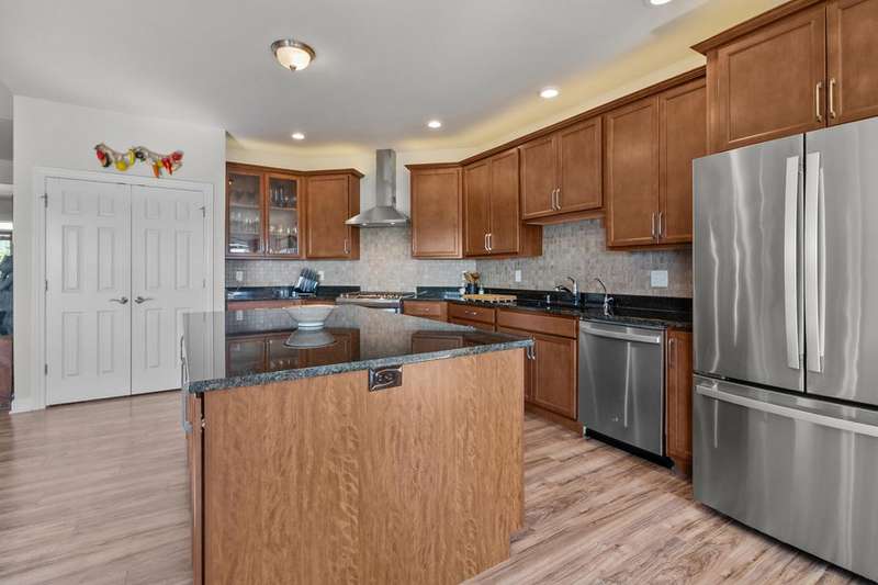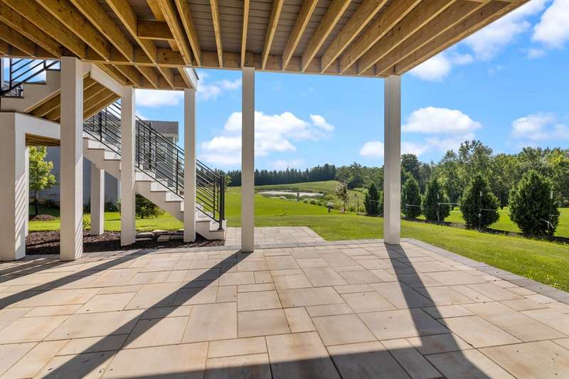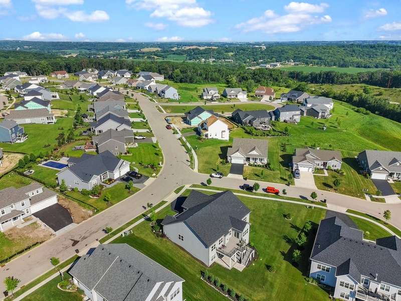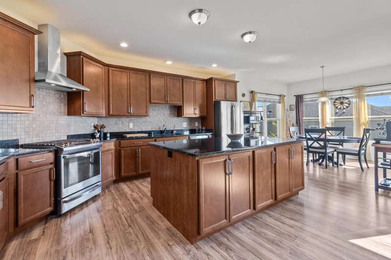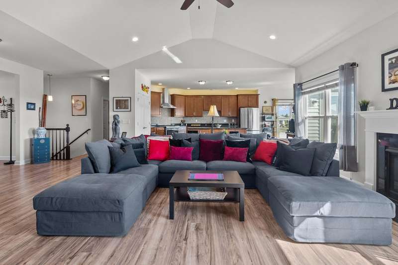 Stunning views! 3 bedrooms, office, and 2.5 baths offer comfort, functionality, and room to grow. The expansive kitchen featuring an oversized island with deep drawers, pantry, and rollout storage for maximum organization. Two laundry hookups, a generous walk-in closet, and a maintenance-free deck--perfect for relaxing and catching views of nearby fireworks. Walkout lower level offers additional living potential, with roughed-in plumbing ready for a future bathroom and access to a lower-level patio. 3-car garage provides ample space for vehicles and storage. Outdoors, upgraded landscaping creates a private, serene setting with perennials, Norway pines, and star power junipers. Maples provide vibrant red foliage each fall, adding seasonal beauty to your backyard with an irrigation system.