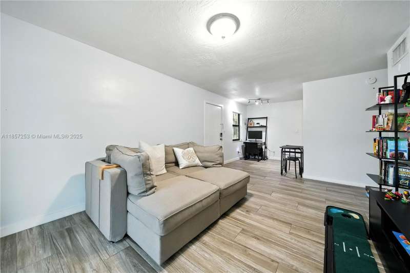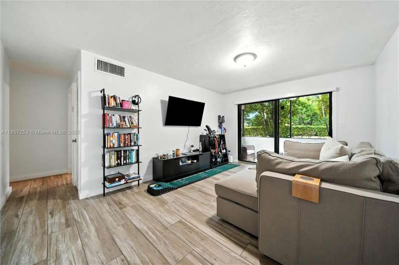 Be ready to feel right at Home with this cozy updated corn unit condo in Palmetto Bay, featuring wood-look porcelain tiles, impact windows & Sliding Glass door, wood shaker style kitchen cabinets with granite countertops & stainless steel appliances. The large bedroom offers a spacious closet and ample space. The bathroom tiles throughout the walls, a glass enclosed shower and linen closet. Relax on the screened-in covered patio with peaceful garden views. Prime location just minutes from The Falls, shopping centers, dining, and more. Perfect for comfort, style, and convenience!