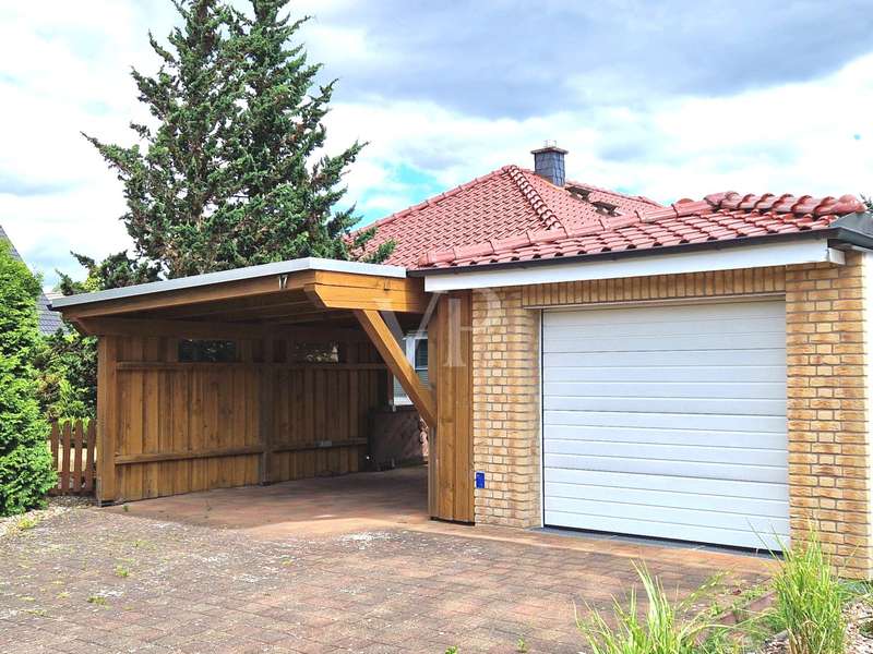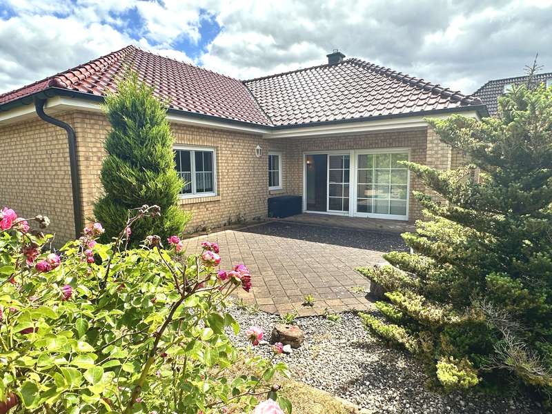 Welcome to this well-kept bungalow built in 2004. With a generous living space of approx. 121 m², this property offers everything you need to feel at home. The bungalow is situated on a plot of approx. 802 m² and is therefore ideal for families who appreciate plenty of space and comfort. The property has five rooms, including three comfortable bedrooms, which offer a variety of uses. The room concept is well thought out and designed at ground level, which enables barrier-free living. The living area impresses with its spacious rooms and is equipped with a cozy fireplace, which creates a pleasant atmosphere in the colder months. A highlight of the property is the private garden, which is perfect for relaxing and playing. A garden fountain supplies the lovingly landscaped outdoor area. The 40 m² sun terrace invites you to enjoy convivial evenings with family and friends. A practical addition to the house is the spacious utility room and attic, which offers plenty of storage space for provisions and household appliances. A guest WC with shower and a large daylight bathroom provide the necessary comfort and round off the well thought-out space on offer. The furnishings of the property are of a normal quality and yet leave nothing to be desired. Both a carport and a garage are available for your vehicles. The latter also offers a storage room for tools or garden accessories. Particularly noteworthy is the well-kept condition of the house, which allows you to move in immediately and feel at home. The location in a quiet residential area guarantees a pleasant living environment, yet all amenities for daily needs are within easy reach. Overall, this property offers a successful combination of spaciousness, comfort and functionality. If you are interested in a viewing, please do not hesitate to contact us. We will be happy to present this attractive offer to you in more detail. You should not miss this opportunity.