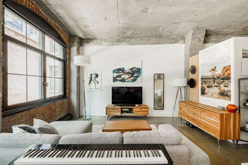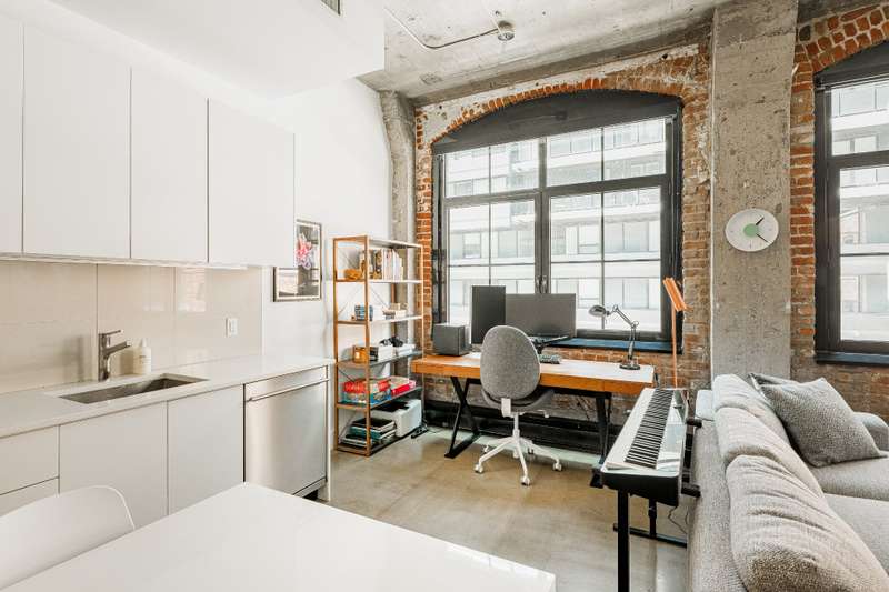Stunning condo at Southam Lofts, located in an iconic downtown building. This unique unit features large industrial-style windows, an exposed brick wall, and a sleek, modern kitchen with built-in appliances. The open-concept layout creates a warm yet contemporary space where every detail adds character. With 11-foot concrete ceilings and integrated storage, this home perfectly blends style and functionality. Prime location just steps from the metro, Old Montreal, restaurants, shops, and boutiques. Don't hesitate to contact me, Eric Wai, at 514-889-1126 to schedule a visit, act fast!