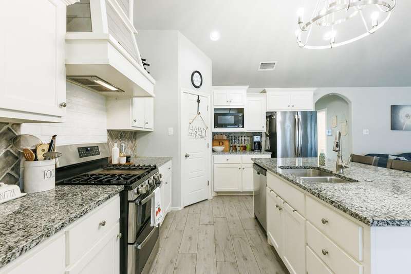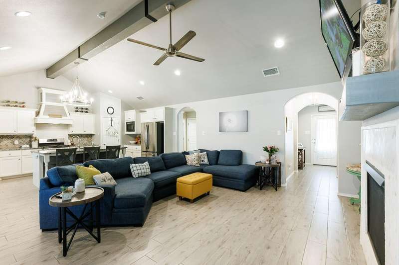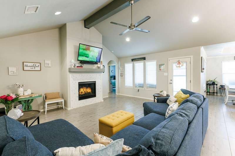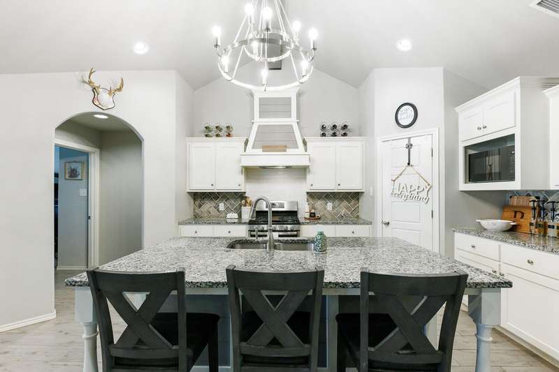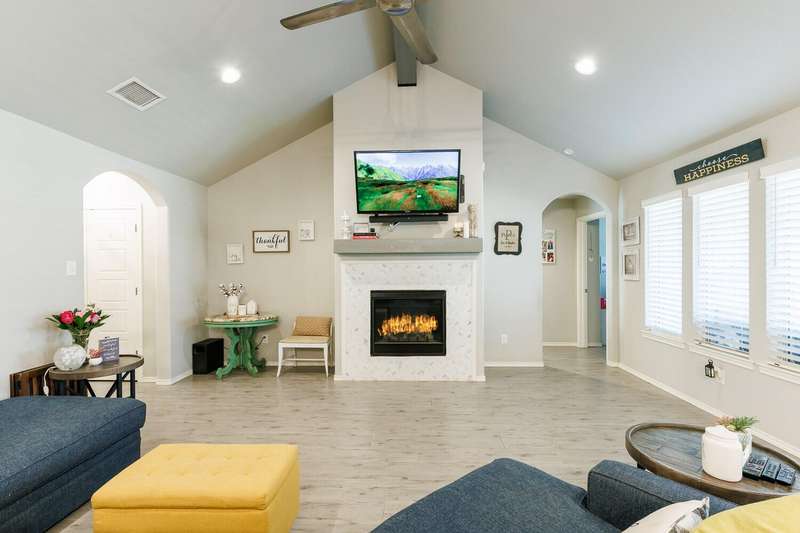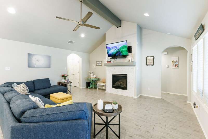 Welcome to this Beautifully Maintained 4 Bedroom, 3 Bath Home in an Ideal Neighborhood, Within Walking Distance to Laura Bush Middle School. The Stunning Entryway Features a Brick Barrel Ceiling. Open Concept Living Area is Warm and Inviting with Vaulted Ceilings, Striking Wood Beam, and Cozy Gas Fireplace. The Kitchen is Truly a Standout with Large Island, Gas Cooktop, Granite Countertops, Spacious Pantry, and Seamless Flow to Living and Dining...Ideal for Entertaining! This Thoughtful Floorplan Offers an Isolated Primary Bedroom plus Ensuite Bath Featuring Double Vanities, Soaker Tub, HUGE Walk-In Closet that Convineltly Connects to the Laundry Room. The 4th Bedroom is Tucked Away with its Own Full Bathroom, Perfect for a Mother-In-Law Suite or Private Guest Space. Easy to Maintain Wood-Like Tile Throughout Home, Adding Style and Durability. With SPEC as Utility Provider, This Home TRULY Checks all the Boxes! Don't Miss Your Chance at this Great Price!
