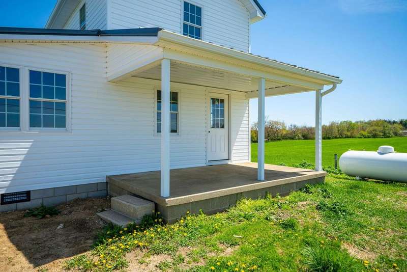 This charming farmhouse has been completely renovated and updated, offering modern comfort in a classic package. Nearly every part of this home is new. The exterior features fresh white siding, a new metal roof, and a welcoming covered porch. Inside, enjoy new hardwood floors, a modern kitchen with gray cabinetry and solid surface countertops, and updated bathrooms with sleek fixtures. New wood-paneled walls and new flooring throughout add warmth, while updated electrical and plumbing ensure reliability. The home also includes full insulation in walls and attic, a new HVAC system, hot water tank, and ample natural light through the new insulated vinyl windows. Perfect for simplified living with all the modern updates you need!