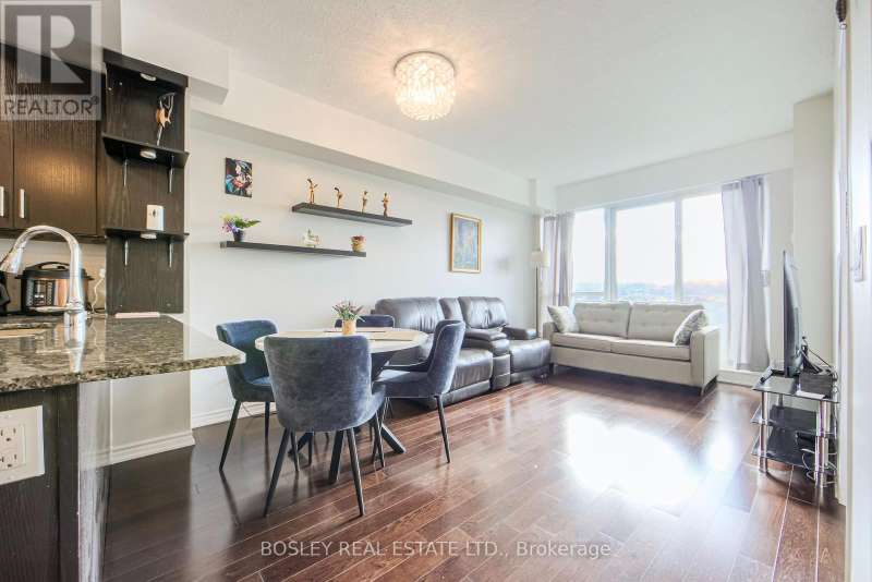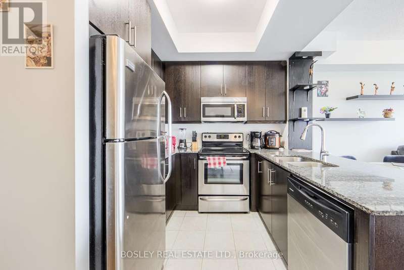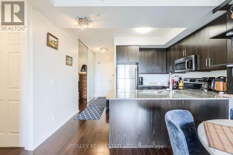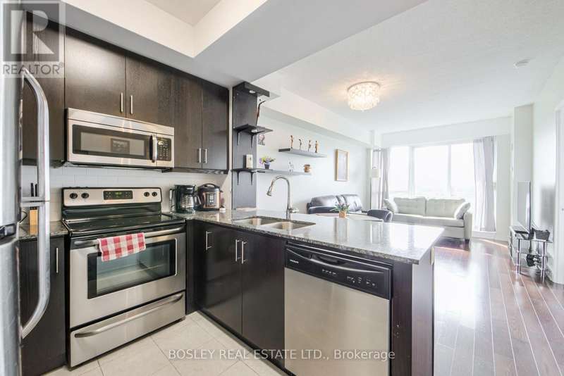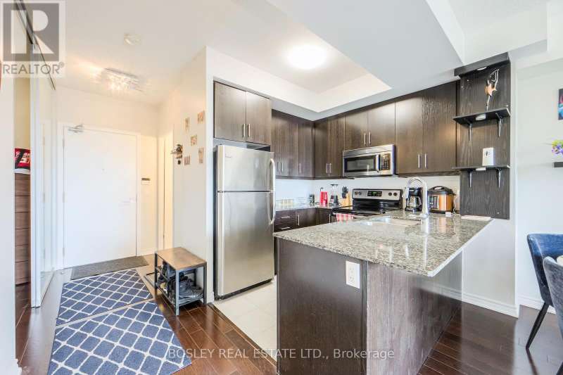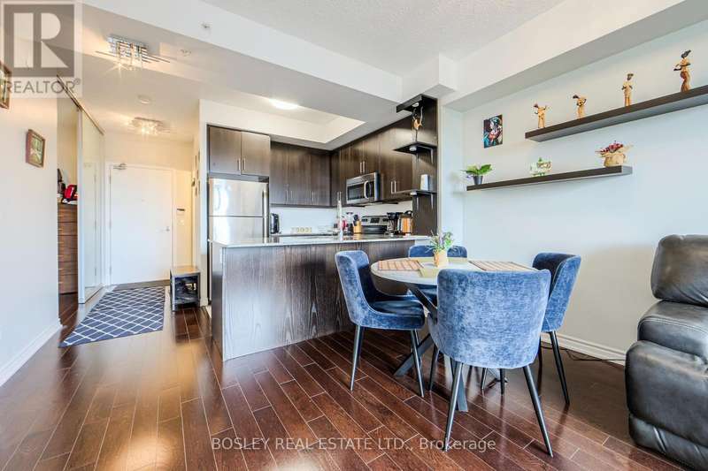 Welcome to this bright and modern 1-bedroom plus full-sized den condo at Keele and Wilson; offering style, comfort, and convenience in one of Toronto's fastest-growing communities. With an open-concept layout, the spacious living and dining area is filled with natural light from floor-to-ceiling windows that showcase unobstructed views of the CN Tower - views you can also enjoy from your private balcony. The sleek kitchen is equipped with stainless steel appliances, ample counter space, and contemporary cabinetry, while the bright primary bedroom provides excellent storage. The den, big enough to function as a second bedroom, home office, or nursery, adds versatility for modern living. Two well-appointed washrooms, ensuite laundry, and thoughtful finishes throughout complete the interior. This rare unit also includes both a parking spot and a locker, offering extra convenience and value. The building features desirable amenities such as a fitness centre, party/meeting room, concierge and ample visitor parking space. Location is key, with TTC steps away, Humber River Hospital, Yorkdale mall, and Downsview Park all nearby, plus easy access to Highway 401 and 400 for stress-free commuting.