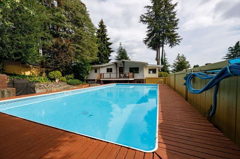 Solid 4-bedroom Windsor Park home with wonderful west-facing yard and pool. Well-maintained house with 2400 sq ft of spacious living. Features include soaring Vaulted ceilings, 3 generous bedrooms on the main floor, open kitchen with cozy eating area, expansive family room/den, hardwood under the carpet and lovely fireplace. Fabulous outdoor space with plenty of decks and patios surrounding a sparkling pool, perfect for cooling down in the heat. The lower level features a bedroom , bathroom and rec room and is easily suiteable. A unique circular driveway and carport that can handle all your parking needs. A special home waiting for your family! Open Sunday 2-4