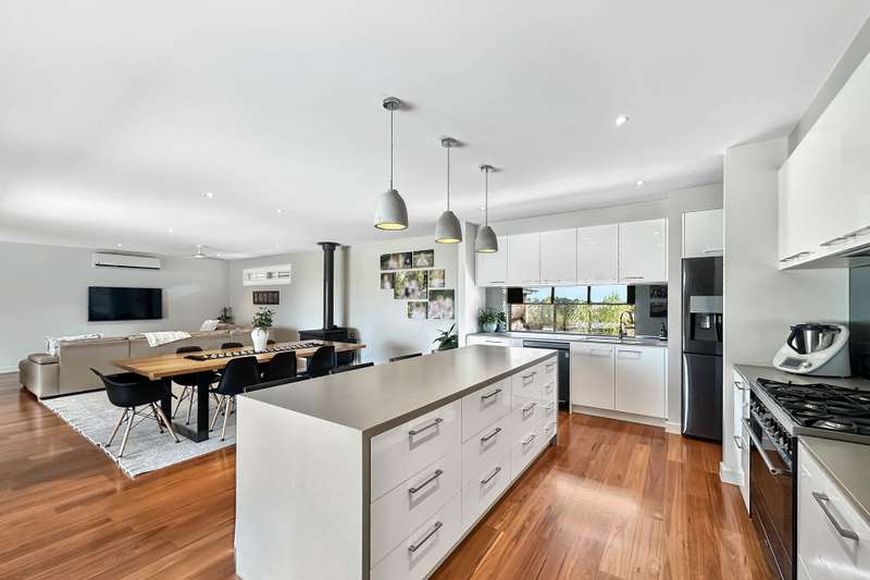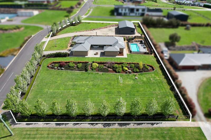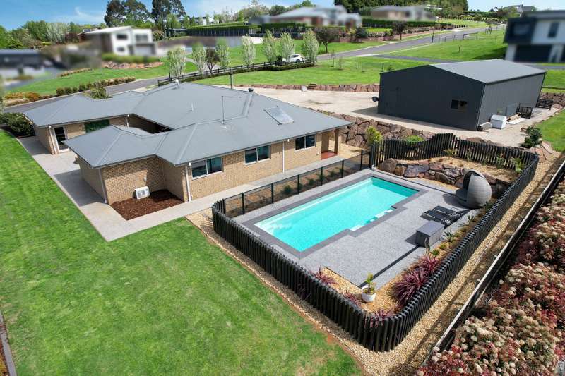 A magnificent achievement in style and quality offering supreme living standards, this stunning builders own residence is quite simply one of a kind. Occupying a substantial 4003m² allotment, unique in structure, elite in comfort and premier in position, this prestigious address delivers an unprecedented level of sophistication. Enter via a long full concrete driveway to an oversize double auto garage providing direct residence entry. Internally, the well-structured floor plan offers 4 double size bedrooms, main with walk in shower, dual vanities and separate toilet. The front positioned study caters superbly for working from home business needs. Relaxation areas are well catered for with spacious open plan family living area and rear located rumpus room. The Eastern orientation delivers a scenic aspect and polished timber flooring, extensive cabinetry and walk in linen compliment quality appointments such as double glazing, split system heating & cooling and solid fuel heating. The centrally located designer kitchen with stone bench tops, Smeg oven, dishwasher and walk in butlers pantry is absolutely stunning and provides a focal point of merging indoor and outdoor living with sliding doors providing access to fire pit surrounds and private covered East side alfresco arrangement. The sun soaked solar heated self-cleaning in-ground swimming pool is both refreshing and inviting. The 15x9m Colorbond shed with high clearance roller doors accessed via side driveway services both workshop and additional vehicle requirements, while the fully hedged boundary maintains a high level of privacy. Extensive manicured landscaped surrounds, prestigious location and scenic views, well deserved of the quality and craftsmanship this property has to offer. Experience a whole new lifestyle in a home and property that surpasses all expectations.