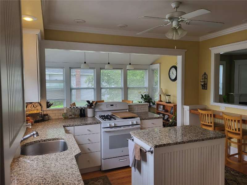This beautiful historic home built in 1898 has been lovingly restored and updated with amazing detail. A coin embedded in the granite kitchen island marks the home's construction year, while a substantial wooden diving board from the original Marion pool has been repurposed as a sit-up bar. 4 bedrooms and 2 full baths round out a comfortable home with a built-in gas fireplace in the living room and a formal dining off the kitchen. Everything is modern and every nook and cranny has been thoughtfully updated with cool design features and decor. Even the yard has been curated with thought t on every seating area to the flowers that surround you This home is within walking distance of the historic Uptown district where all the shops boutiques restaurants and festivals are. This is a rare must-see home. Ready to move in.
