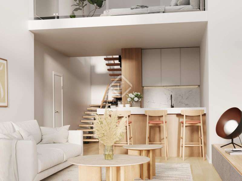 This charming apartment is located on the fourth floor of the Castillejos Sant-Pau building. With its 59 m² and 20 m² of outdoor space, it redefines the residential experience and the concept of refinement and functionality. It has two bedrooms and a bathroom, and a southeast orientation, maximizing the sun and providing a bright and welcoming atmosphere. Upon entering, we are welcomed by a entrance hall that leads to a practical kitchen that blends harmoniously with a bright dining room living room and an exterior balcony, a private corner to enjoy the outdoors. The night area features a clever layout , consisting of a double main bedroom with an en-suite bathroom and a private balcony. Adjacent to this is a second exterior single bedroom that enjoys plenty of natural light. The apartment also has another separate bathroom for added convenience and privacy. High-end finishes and meticulous attention to detail define the essence of this home, reflecting a commitment to excellence. Ultimately, this property perfectly combines functionality and style in a strategic location. Don't hesitate to contact us for more information about this exceptional property and discover the uniqueness of living in Castillejos Sant-Pau.