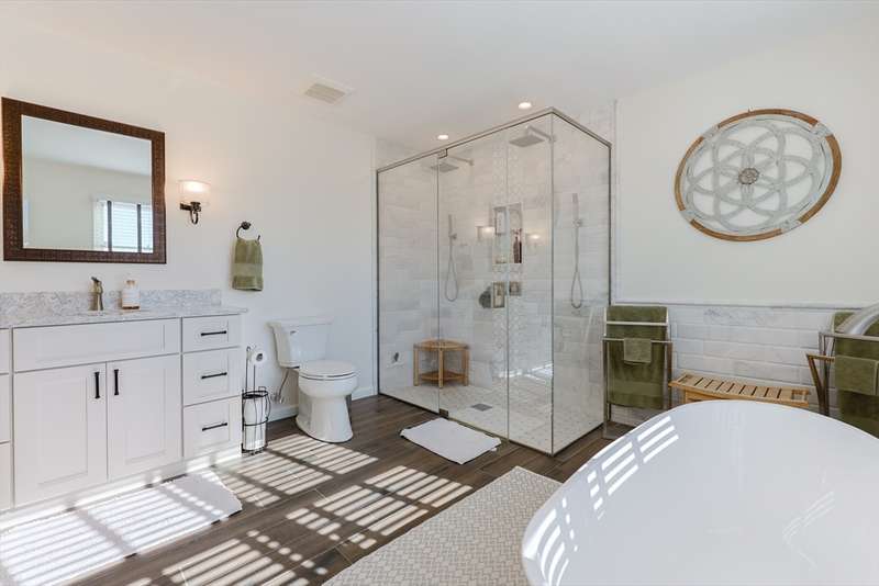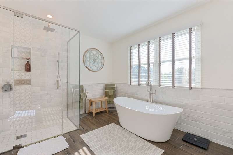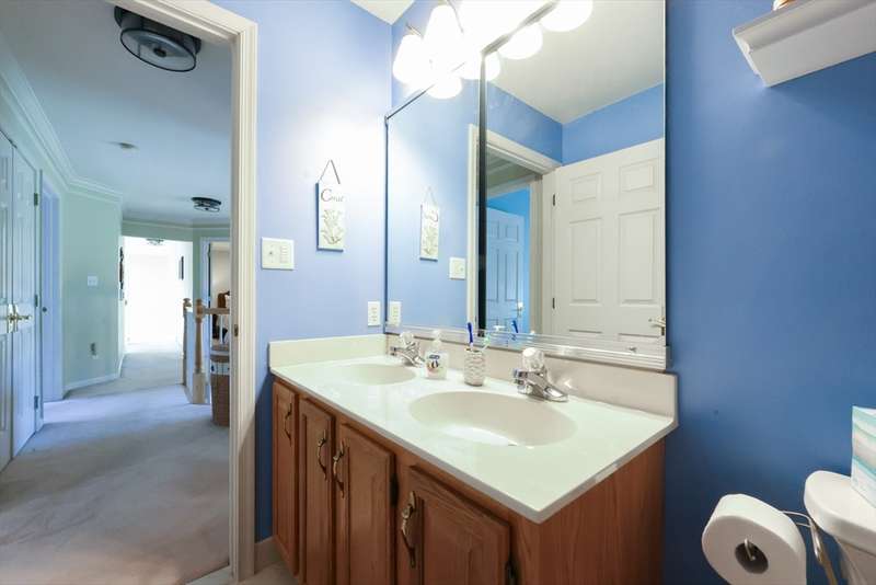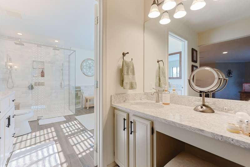 This large contemporary Colonial brings all the Pottery Barn feels soft coastal tones, airy light, and an open flow from the front-to-back living and dining rooms. High ceilings, recessed lighting, and crown molding give the whole space that polished, magazine-ready glow. The expansive kitchen-family room combo shines with upgraded white cabinets, stainless appliances, and a walkout to a spacious deck with serene vista views. The luxe primary suite features walk-in closets and a fully remodeled spa bath with a soaking tub and gorgeous glass shower your own private oasis. Three additional bedrooms offer generous space and storage, plus two office suites one on the main level and one in the remodeled lower level. The lower level also includes a bedroom and full bath, perfect for guests or multi-gen living. Outside, the level yard is pool-ready or ideal for a future patio. A three-car garage with EV charger and a long, wide driveway complete this dream-worthy home.