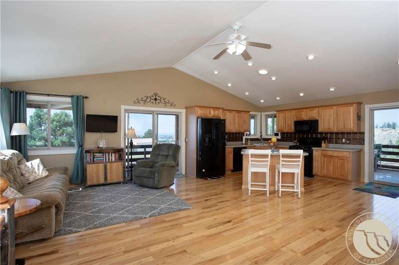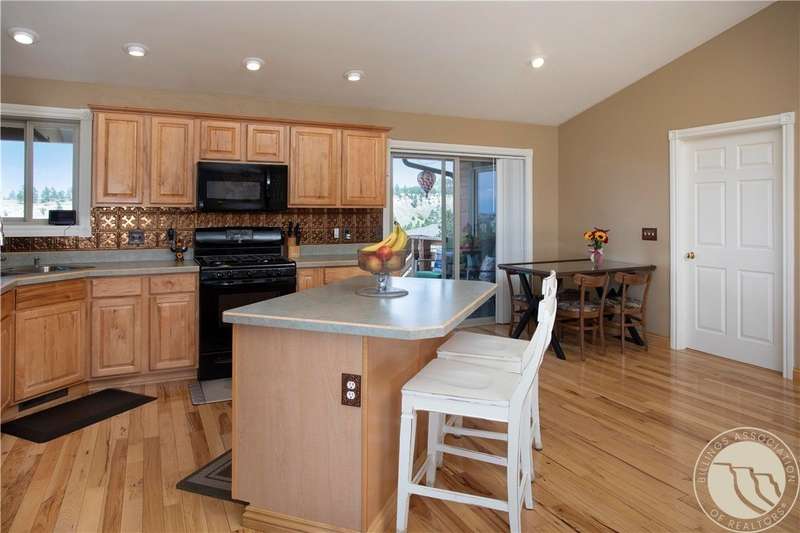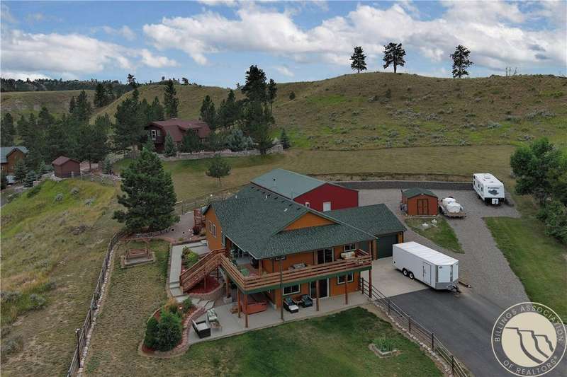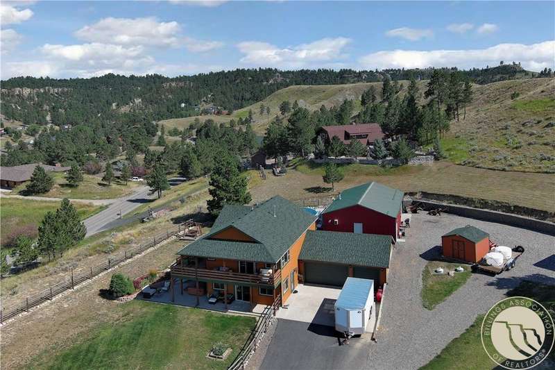Experience the perfect blend of comfort, space and scenery in this stunning 5-bedroom, 3-bathroom home. Perched to capture great views, property boasts a covered wrap-around deck ideal for relaxing or entertaining while taking in the beauty. Open-concept main level features a spacious living area and large kitchen with gas range, island, pantry, and ample counter space. Primary suite impresses with comfortable size, beautiful views, walk-in organized closet and bath featuring jetted tub and walk-in shower. Walk-out basement provides additional bright living space. Large heated/cooled shop (30x50) and shed (10x12) offer room for vehicles, storage, or projects. Enjoy summer fun in the 24-foot pool and watch abundant wildlife that frequent the property. With its serene setting and thoughtful features, this home offers both tranquility and a short drive into town in one remarkable package.
