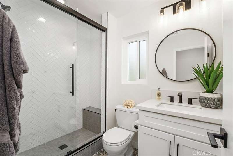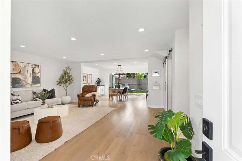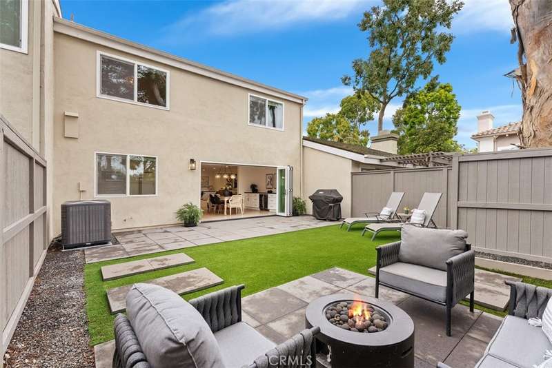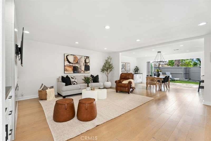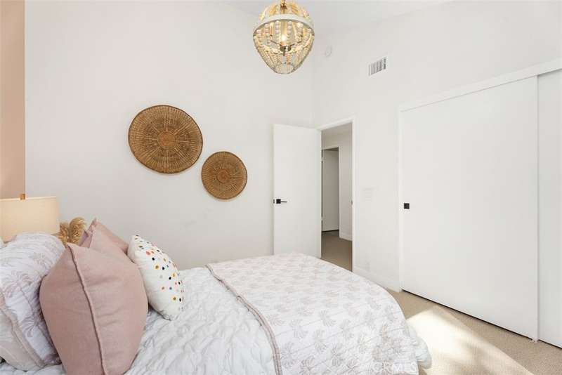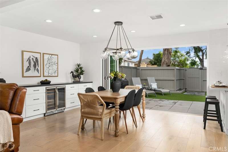 The open, light-filled layout features beautiful hardwood flooring and flows through a 12-foot accordion glass door to a serene private backyard, perfect for indoor-outdoor entertaining. All bedrooms feature vaulted ceilings and abundant natural light. The primary suite includes a walk-in closet, dual vanities, and a large walk-in shower, while the downstairs bathroom also offers a spacious walk-in shower. Additional highlights include a gated private front patio with potential for a room addition connecting to the garage, overhead garage storage with utility sink and laundry hookups, and ADU potential within this Beachwalk community. The home is ideally located near one of the four additional satellite pools located throughout the neighborhood.