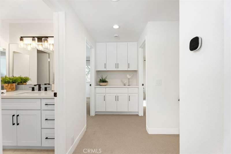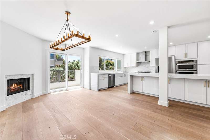 Beautifully remodeled down to the studs in 2021, this 3-bedroom, 3-bath single family attached home showcases high-end finishes from that renovation, including a quartz-topped built-in buffet with under-counter dual refrigeration, full home automation, new HVAC and ducting, new windows, recessed lighting and designer fixtures, and soft-close drawers and cabinets. Current upgrades include brand-new carpet, custom roller shades, epoxy garage floor, Noritz tankless water heater, and new built-in quartz-topped cabinetry that frames a sleek, modern tiled electric fireplace. The chef's kitchen boasts quartz countertops, breakfast bar, premium GE Cafe appliances, and a walk-in pantry with an additional lighted storage area under the staircase.