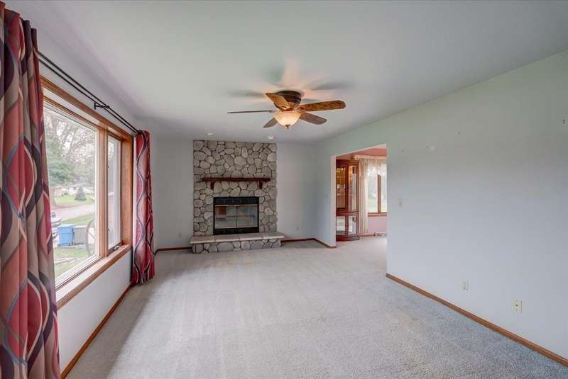 80 ft of frontage on Rock River. This home offers a great opportunity for buyers looking to personalize their space. Featuring 4 generously sized bedrooms, 2.5 bathrooms, large kitchen and dining area. A spacious living room and family room each with their own wood burning fireplace create an ideal setting for relaxing evenings or entertaining guests year round. Being sold as-is, this home has solid potential with room for updates and improvements to make it your own.