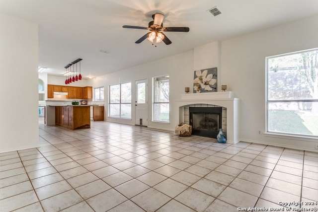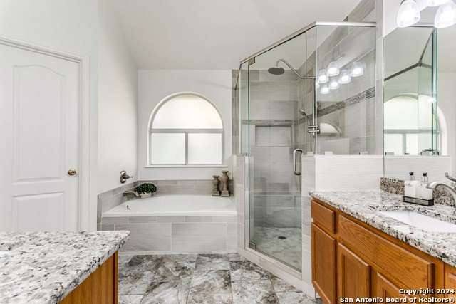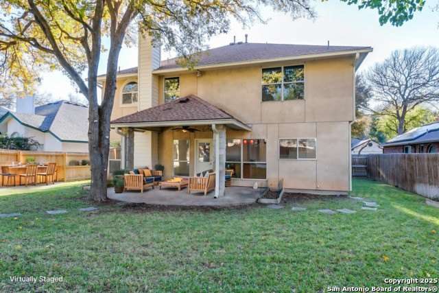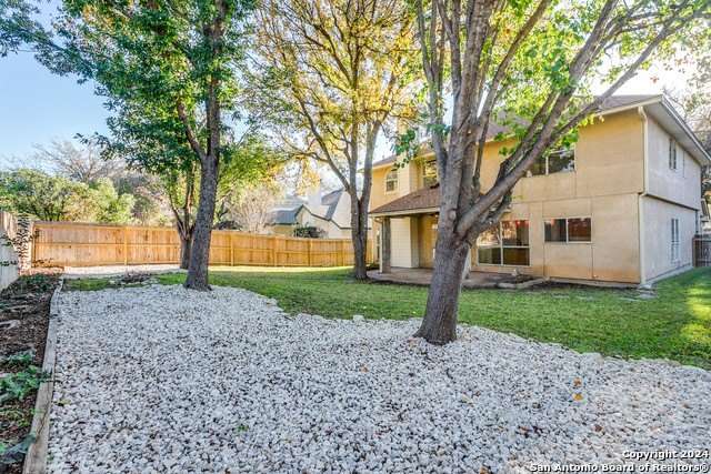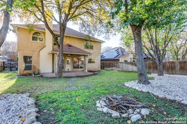 Freshly painted 4bed/2.5bath with 2 car attached garage and is move in ready! This home is in the prestigious Racquet Club of Camino Real. It is a small, private, gated community with a Pool, Tennis, and a Clubhouse. The home is in NEISD schools and centrally located with easy access to the airport, downtown, restaurants and shopping. All bedrooms are upstairs with walk- in closets and a sizeable game room. The spacious primary bedroom is at the top of the stairs with a grand double door entrance. The primary bath is updated with separate shower, garden tub and separate vanities. The second primary closet is attached to this bathroom. The kitchen has an oversized island and a built-in desk. The Family room has a cozy fireplace and is open to the kitchen. Laundry room is conveniently located downstairs. The private backyard has a covered patio and beautiful mature trees, perfect for outdoor entertaining.