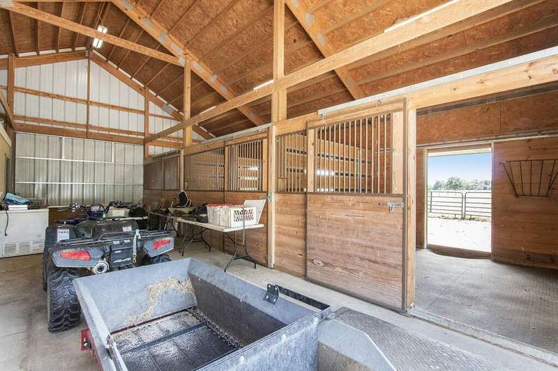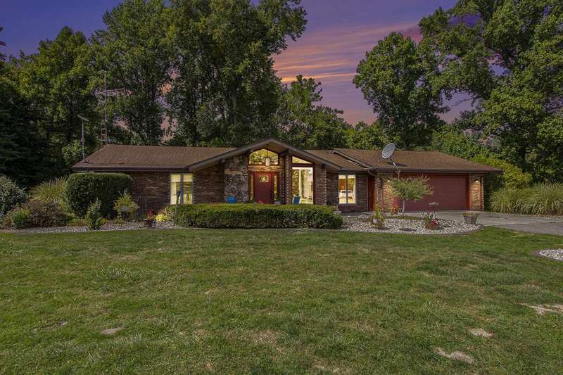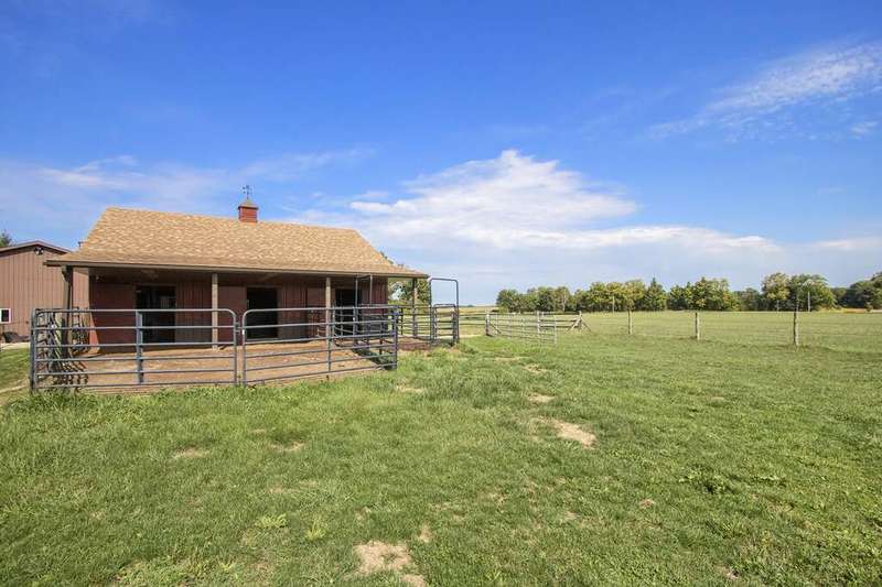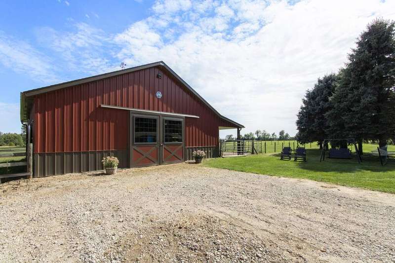 Stunning 4-bed, 3-bath luxury ranch with walkout basement overlooking scenic Pipestone Creek. Extensively remodeled on both levels, this home offers main floor living with laundry, a custom kitchen with quartz countertops, and a spacious deck with serene views. Unique features include a 900 bottle wine cellar, kitchenette in your walk-out basement, and over a mile of trails in the woods to enjoy on horseback or your ATV. The property includes 17 acres with the home, 4-stall Morton horse barn with wash station and tack room, three of the stalls with turn out paddocks attached, 40 x 72 pole barn with a 24 x 40 workshop, 64 x 22 run-in shed, and 7 acres of pasture, The barn is equipped with security cameras, and pastures are monitored as well. A driveway sensor adds peace of mind, making this an exceptional blend of modern comfort, security, and country charm. See additional listing #25046795 for an additional 27 acres of hay being sold with the house.