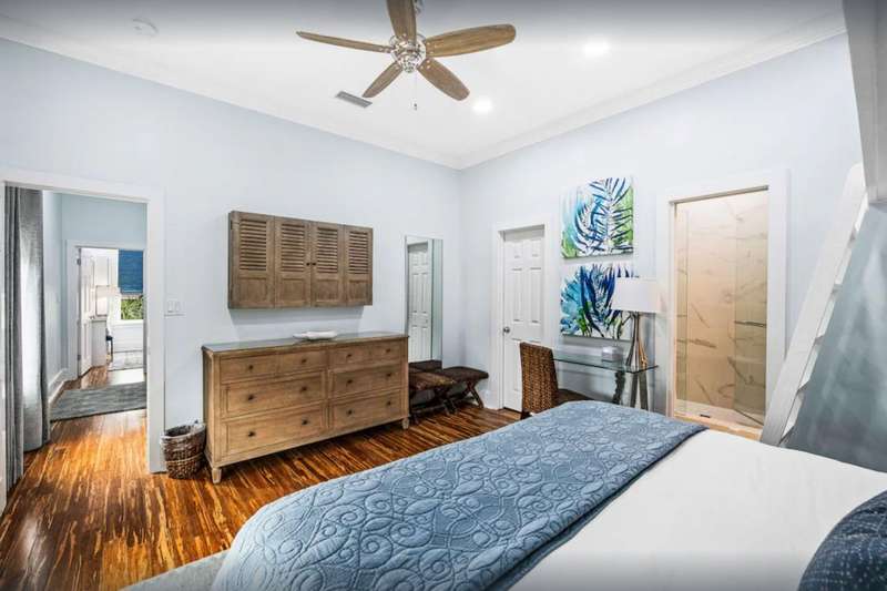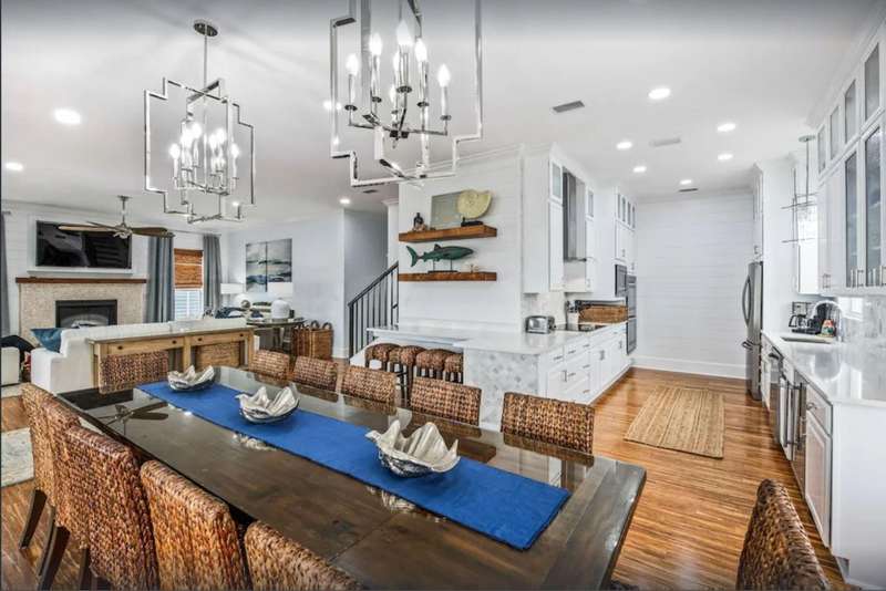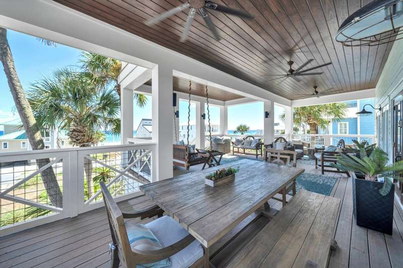 WELCOME HOME to your quintessential Beach Retreat. BAHAMA BREEZE has it all: panoramic Gulf views, unbelievable living, dining, entertaining, relaxing: Gulf Coast living at its finest. Just steps to boardwalk leading to white sand & emerald water. Renovated with the utmost sophistication while maintaining the relaxed coastal vibes. Excellent investment opportunity. Bahama Breeze sleeps 25 but with a thoughtful floor plan, all guests have privacy and plenty of outdoor relaxation. Make forever memories in the spacious open concept living, dining, kitchen area with spectacular Gulf views, a gourmet Chef's kitchen, dining al fresco on the fantastic balcony or just being with friends. Wonderful outdoor areas including heated pool and multiple porches provide relaxation after a day in the Gulf The first floor's casual living room is a great spot to unwind or gather before heading out to explore 30A. An air hockey table, games, and TV will keep all your guests entertained - even on those rare rainy days. Past the living room, two guest bedrooms share a bathroom with shower. One has 2 queen beds, and the other has 2 twin-over-twin bunk beds. Guests will appreciate the convenience of a kitchenette and laundry room on the first floor.On the second floor, guests can choose between a bedroom with 2 twin beds perched above a king bed with an en-suite bathroom with shower or a guest bedroom with full-over-full bunk beds. The bunk room bathroom has a shower and is in the hall outside of the bedroom. A laundry room has a washer, dryer, and a second refrigerator for all those beach drinks. A bright and airy open-concept living and dining room overlooks a large galley-style kitchen. The kitchen's premium stainless-steel appliances, dual ovens, wine cooler, and long marble countertops provide ample space for everyone to mingle and share stories of their wonderful day they have had at the beach! A tabby fireplace surrounded by plump sofas is an ideal gathering spot for afternoon cocktails. Enjoy toasting sunset from an outdoor living room while barbecuing at the grilling station. A bed swing and bright, cheerful cushioned chairs frame the stairs that lead down to the beach access and pool area.On the third floor you will find 3 primary suites. The first primary suite has a king bed with a full sleeper sofa, flat-screen TV, desk, and en-suite bathroom with a soaking tub and separate shower. Double doors open onto a balcony. Two additional primary suites also have king beds with full sleeper sofas and en-suite bathrooms with showers only. The balcony offers a more private space to sunbathe and breathe in the fresh, salt air. Recline on the swinging bed or snuggle up for a late-night chat underneath the stars.After a sunny day at the beach, come home to a relaxing float in your private pool. Outdoor spaces provide ample room for privacy or large gatherings. 2nd floor balcony is 22x36 with grilling station, large dining area and several areas for lounging and enjoying the gorgeous Gulf views. 3rd floor balcony is 21x40 and offers a quiet and relaxing retreat for enjoying those spectacular sunsets on the Gulf.Premier location in Grayton Beach with shopping, restaurants and all the fun of Scenic 30-A just a walk or bike ride away. Gulf Trace is bordered by Grayton State Park, one of the area's most prized and renowned parks. The best of both worlds with the emerald water, white sands of the Gulf and the scenic state park and rare Coastal Dune Lake. Start living