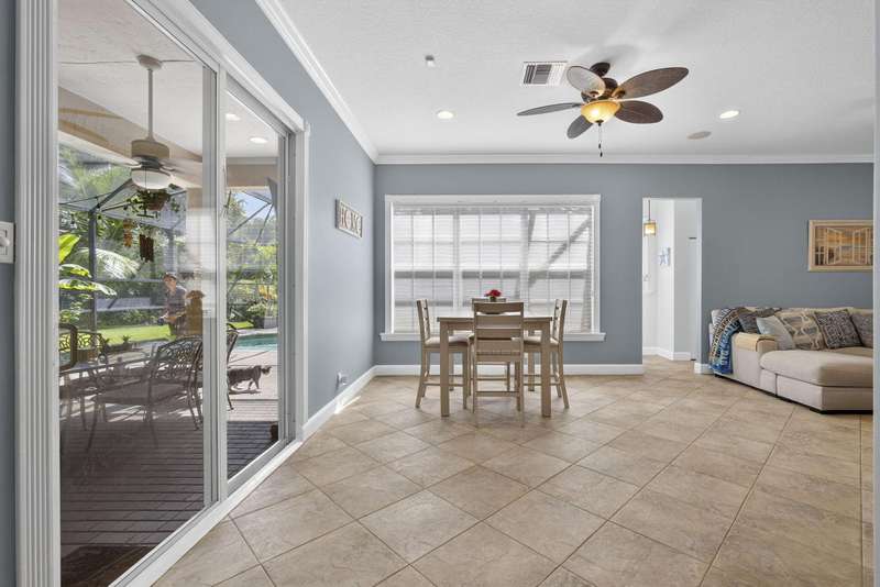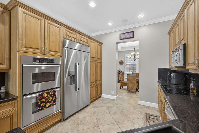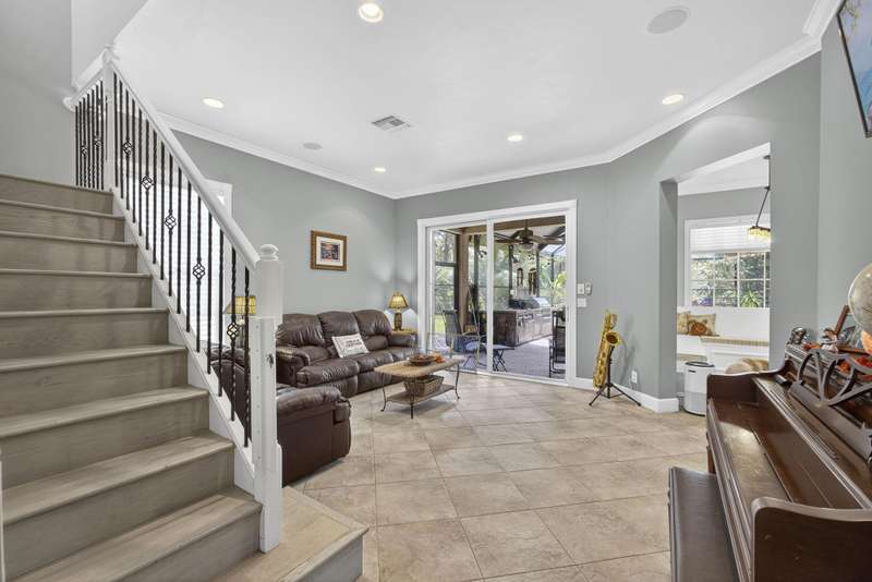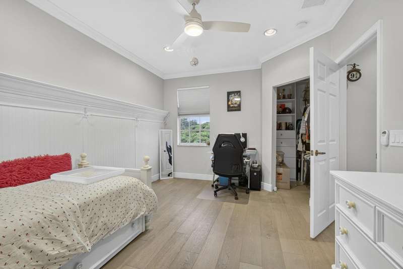 Spacious 4 Bedroom 4 Bath pool home, fully fenced 3,122 Living Sqft, largest pie-shaped preserve sheltered lot on the only cul-de-sac in the highly desirable, well located community of Paseos. No thru street, two flowering treed and palm landscaped islands in cul-de-sac. Home features,impact glass and doors, wired for whole house generator, fully screened in pool and patio with ample space for shaded seating, summer kitchen, very large private yard split for each side access, covered Front Porch, Stainless Steel Appliances w/ Double Ovens, Walk In Pantry, 1st floor guest bedroom adjacent to bath, cabana bath for guests with direct pool access. Nearby A rated schools. Minutes from shopping, medical, beach, airport, access to Turnpike, I95