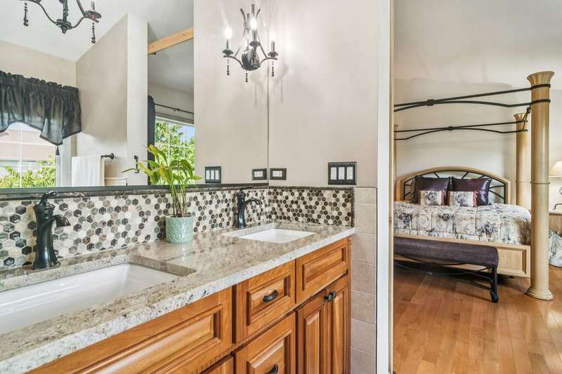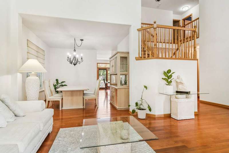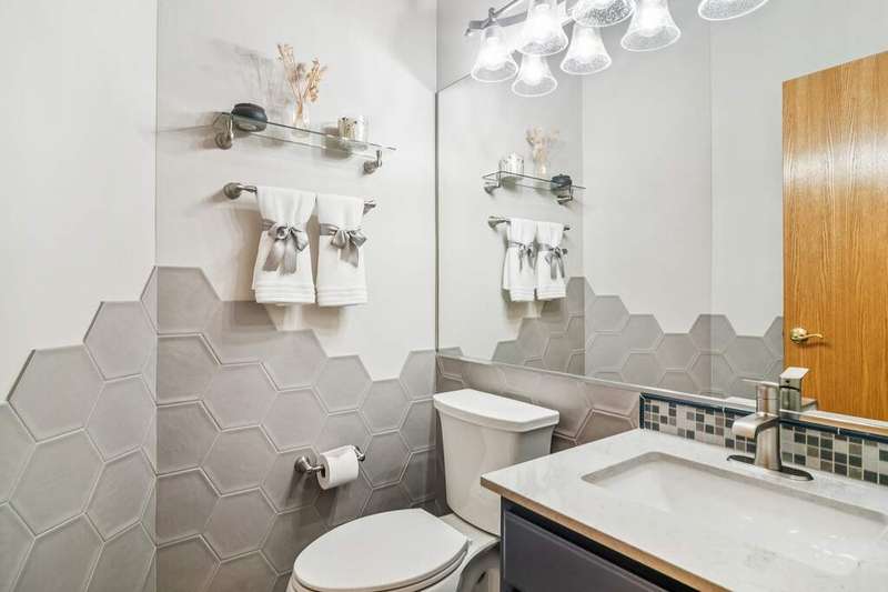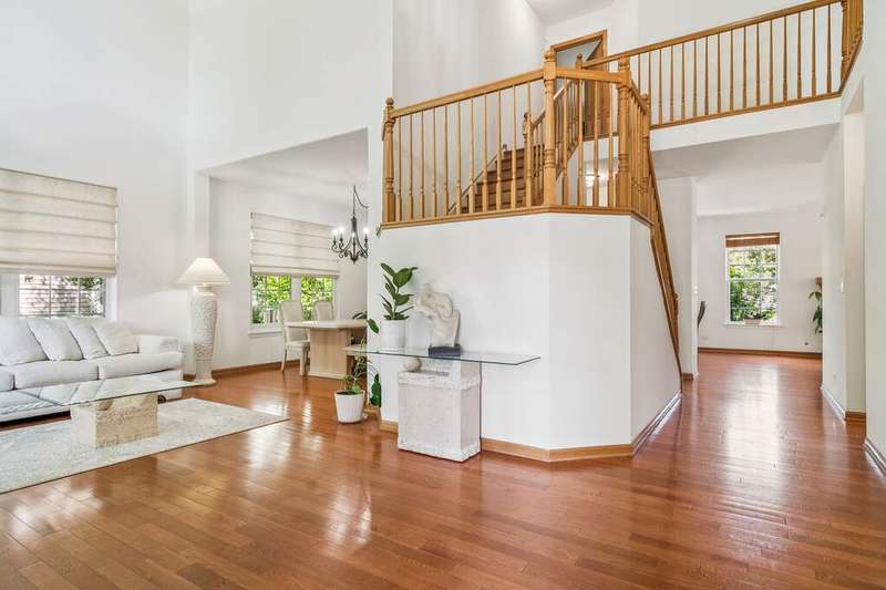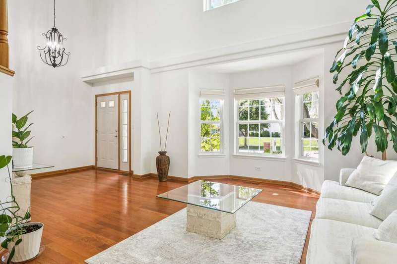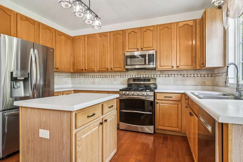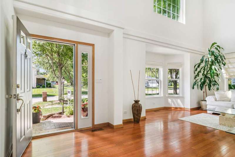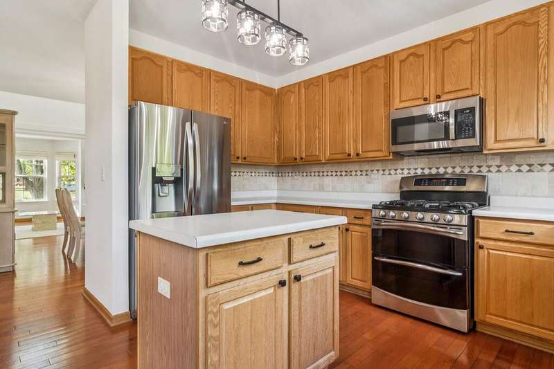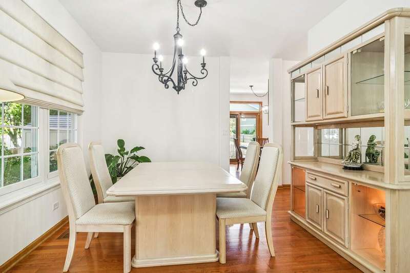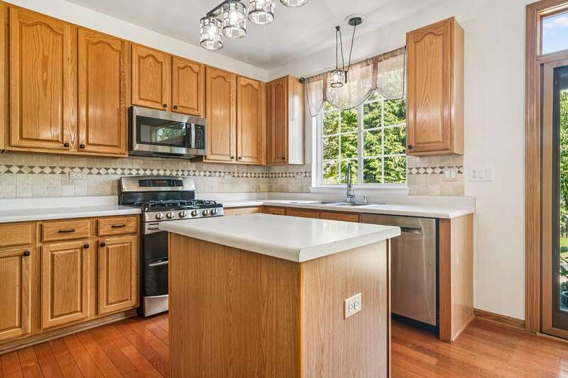 This beautifully maintained 3-bedroom, 2.1-bath home offers the perfect blend of comfort, style, and function. From the moment you step inside, you'll be impressed by the open floor plan, soaring ceilings, and gleaming hardwood floors that flow throughout the main living spaces. Oversized windows flood the home with natural light, creating a bright and inviting atmosphere. The bright and sunny kitchen with newer stainless steel appliances seamlessly connects to the extra-large family room, making it ideal for both everyday living and entertaining. The Pella sliding glass door opens into the professionally landscaped back yard complete with an inground sprinkler system, Unilock paver patio and fully fenced yard for privacy. The recently updated powder room and a convenient laundry/mud room finish off the main floor. Upstairs is the stunning primary suite featuring a walk-in closet and spacious sitting room that doubles as the perfect home office, cozy reading nook or dressing area. The recently updated primary bathroom features Kohler fixtures, travertine walls and marble tile, granite countertops, a spa-like shower and jetted tub. Two additional large bedrooms each with ample closet space and an updated hall bath featuring dual-sink vanity and shower/tub combo means there is room enough for everyone. The finished basement is designed for entertaining, featuring a wet bar and a huge crawl space that provides an abundance of additional storage. This home is move-in ready and has been meticulously maintained by the long-time owners. Featuring new A/C, furnace, humidifier (2024), Anderson windows (2023), water heater (2022) and buyers will have peace of mind for years to come. See full list of updates and upgrades in Additional Documents.