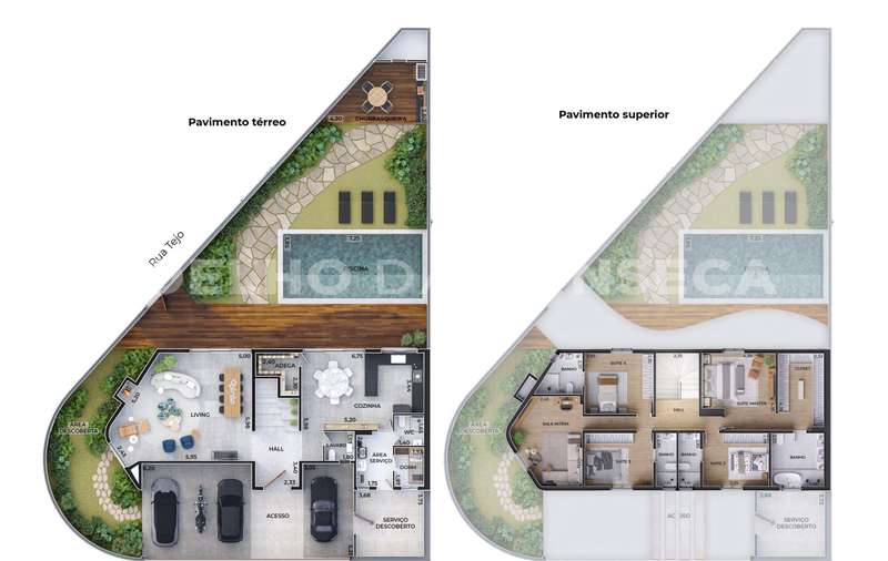 • Pavimento superior composto de suíte master com closet, com mais 03 suítes e sala