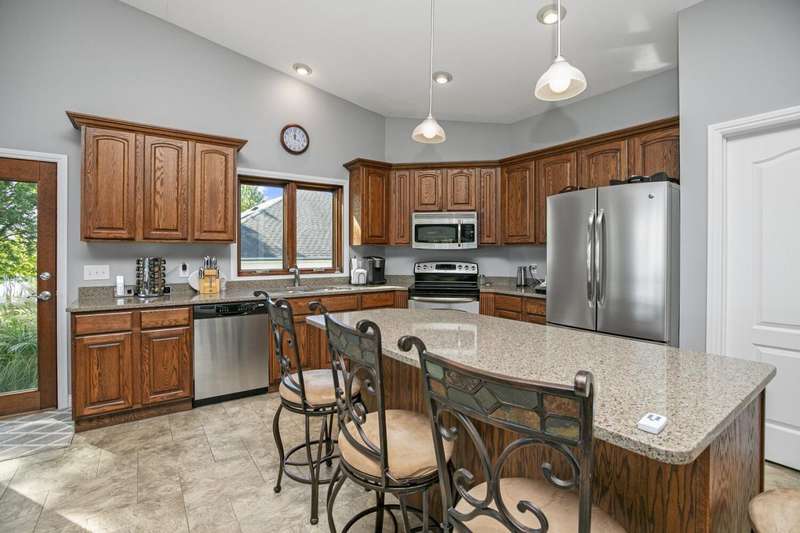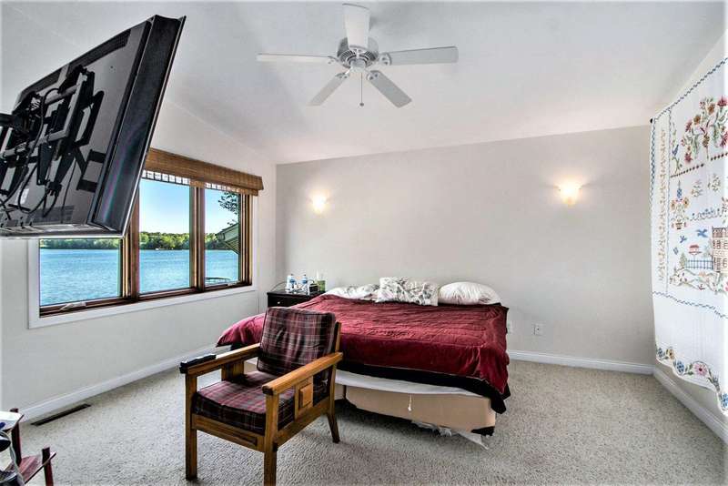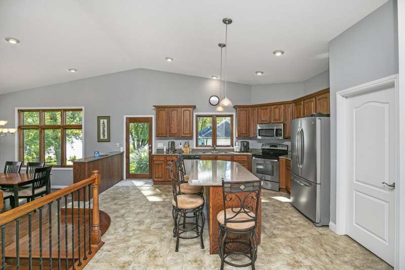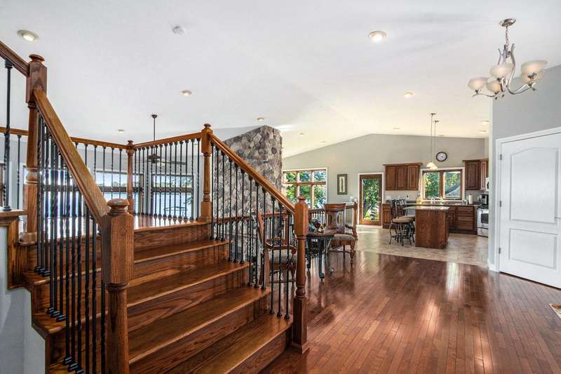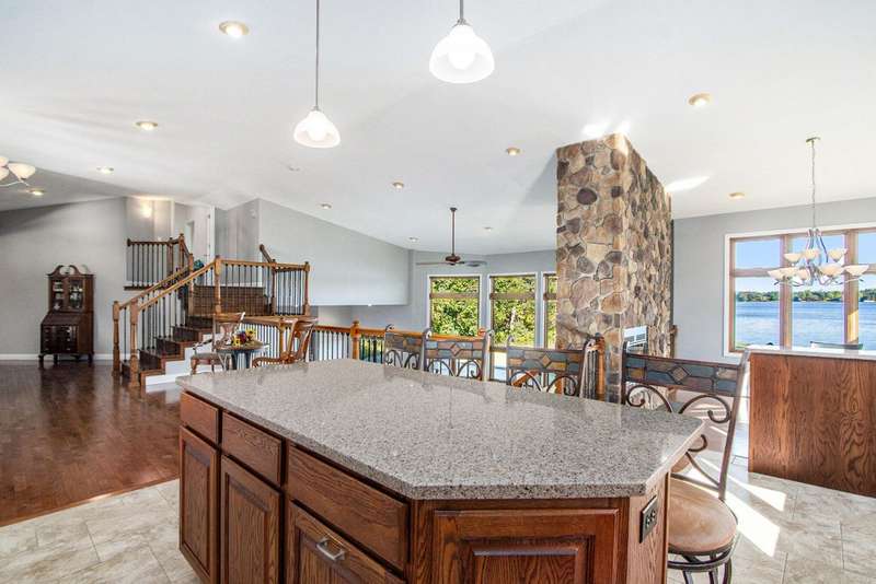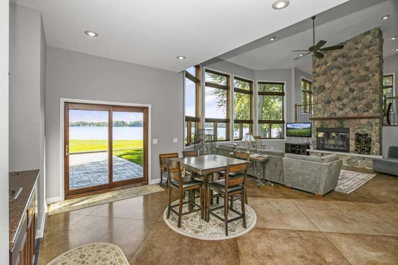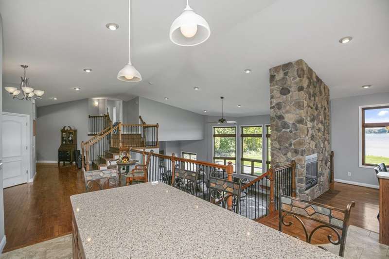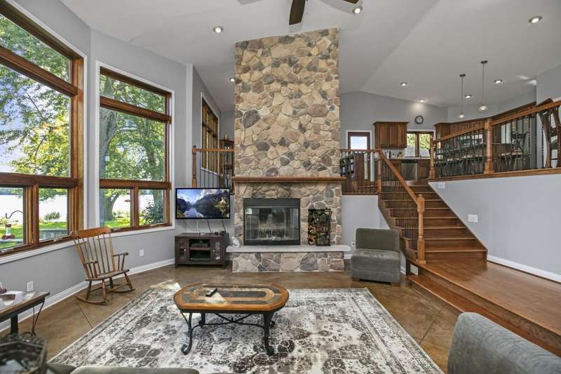WELCOME TO YOUR DREAM HOME sitting on 100ft of shoreline on beautiful ALL-SPORTS Portage Lake! A rare opportunity to own an elegantly designed, MULTI-LEVEL lakefront retreat, located on a PRIVATE driveway, on one of Michigans HIDDENS GEMS. As you enter this 4 bedroom, 3 full bath home, youre greeted by SOARING 18ft high ceilings in the living room, anchored by a massive 16ft STONE DUAL-SIDED FIREPLACE and CUSTOM concrete stamped flooring, creating a dramatic yet warm gathering space. The PRIVATE upper-level PRIMARY SUITE offers a sitting area, spa-like bath with Jacuzzi tub, walk-in closet and a huge tiled shower. THE MAIN FLOOR GOURMET KITCHEN has a GRANITE island with seating, GRANITE counters, CUSTOM cabinets, a pantry and overlooks the dining room, with a STONE GAS FIREPLACE, and OVERSIZED windows on 2 SIDES and LOVELY LAKE VIEWS. Step outside onto your pressed concrete LANAI?a true entertainers dream?featuring a WOOD BURNING firepit, BUILT-IN GAS PROPANE GRILL & a retractable awning for those sunny days! The outside oasis also features a CUSTOM BUILT boulder wall, lush flower beds, and incredible landscaping surrounding the property. Down by the water, a FLAGSTONE PATIO with a SECOND firepit offers the perfect lakeside ambiance. The partially finished LOWER LEVEL BASEMENT has endless possibilities, ideal for a gym, office or recreation area with plenty of room left for storage. Whether youre hosting friends, relaxing by the fire, or enjoying the water right from your backyard, this home is truly a year-round SANCTUARY. Located between Three Rivers and Kalamazoo and only 3 hours from Chicago.