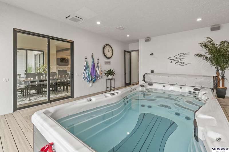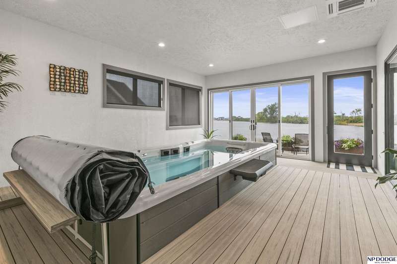 One of the best lake views awaits in this stunning home designed for luxury living and year-round entertaining.Enjoy a temperature-controlled room with swim spa, soaring 10' ceilings with 8' doors, and a chef's kitchen with induction cooktop, oversized island, and hidden walk-in pantry.The primary suite features a custom closet, while the upper level offers a spacious game/family room.Outdoor living is a dream with an automated screened patio, a fabulous hardscape gathering area with fire pit, and an outdoor kitchen under a pergola. Hardie Plank siding ensures timeless durability, while Gemstone permanent holiday lighting keeps the home glowing year-round.Every detail has been thoughtfully crafted to combine elegance, comfort, and functionality. From entertaining to everyday living, this home offers it all-paired with breathtaking lake views that set it apart as a true retreat.AMA