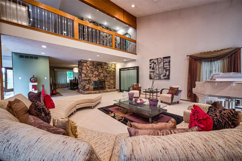 Hurry to see this custom, contemporary and spacious home offering more than 3,600 square feet of elegant, light-filled living space, plus additional basement space perfect for storage, recreation, or future finishing. Situated on a desirable corner lot with a long circular driveway, this home makes a statement before you even step inside. A dramatic 2-story foyer sets the tone, leading into a soaring great room with a striking two-way stone fireplace shared with the comfortable dining room area. The thoughtfully designed kitchen features granite countertops, stainless steel appliances, a large center island with cooktop, and a generous eat-in layout that opens seamlessly to the cozy family room creating the perfect hub for daily living and relaxed entertaining. From the kitchen door wall, step out to the multi-level deck and backyard…ideal for outdoor dining or quiet evenings. The primary suite is a true retreat, complete with a sitting area with wet bar, two-way fireplace, private balcony, dual walk-in closets, and a stunningly renovated en-suite bath. Indulge in the spa-like walk-in shower with custom tile and glass enclosure, or unwind in the freestanding soaking tub set beneath elegant lighting…a perfect blend of luxury and relaxation. The three additional bedrooms are generously sized, and a convenient first-floor laundry room and three-car side entry garage add to the home’s versatility and function. So many updates include a newer furnace, A/C unit & hot water heater, newer washer and dryer, granite countertop in the half-bath, and freshly painted primary bedroom. Updated insulation & windows (2011), and a newer roof (2016) provide comfort, energy efficiency, and peace of mind. Walled Lake schools. Sale excludes 3 flat panel televisions. All measurements and data approximate.