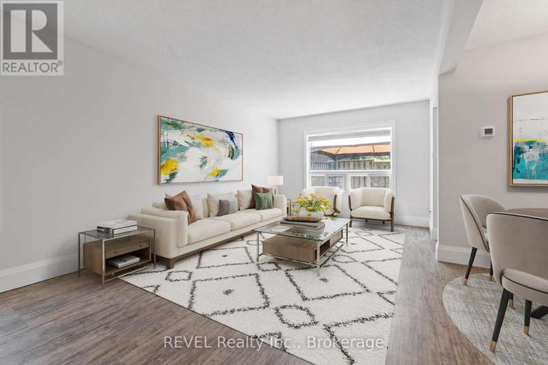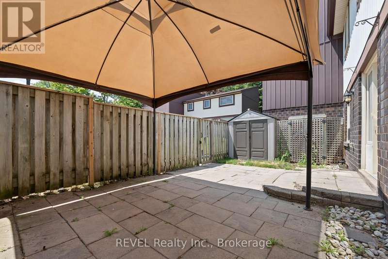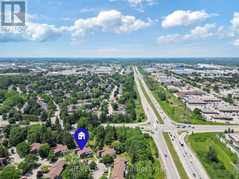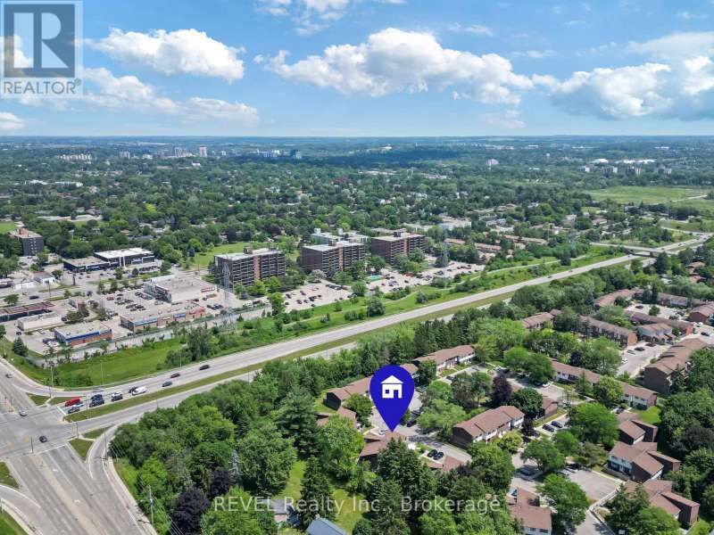 Welcome to Unit 109 at 45 Marksam Road -- an immaculate and fully renovated 3-bedroom, 2-bathroom townhouse condo nestled in the highly desirable Royal Village complex. This rarely offered 2-storey unit combines modern comfort with unbeatable value, featuring low condo fees that include water, and two dedicated parking spaces -- a major bonus in this sought-after community! Step inside to find luxury vinyl flooring throughout, a beautifully updated kitchen with hard surface countertops, upgraded cabinetry, and stylish finishes. The spacious living and dining areas lead to a private front patio, perfect for entertaining, complete with a large gazebo and storage shed. Enjoy the convenience of a main floor powder room, ideal for guests, and a full-size basement offering endless possibilities for extra living space or storage. Upstairs, the oversized primary bedroom features ample closet space, complemented by two additional well-sized bedrooms and a full bathroom. Located minutes from the University of Guelph, highway access, and all major amenities, this unit is perfect for first-time buyers, working professionals, or savvy investors looking to tap into Guelphs strong rental market. Plus, all appliances are included with a brand new washer and dryer! With very little turnover in this well-managed complex, opportunities like this don't come up often. Don't miss your chance to own a turnkey property in one of Guelphs most convenient locations! (id:7434)