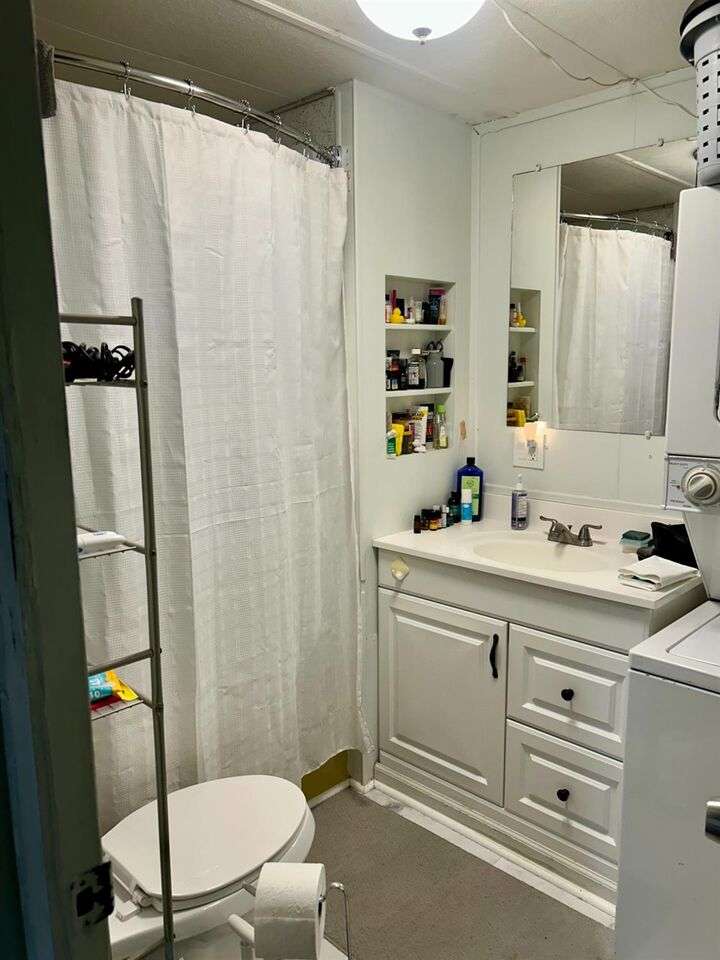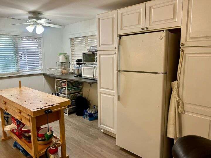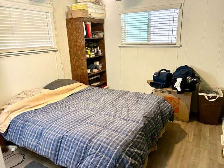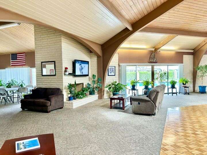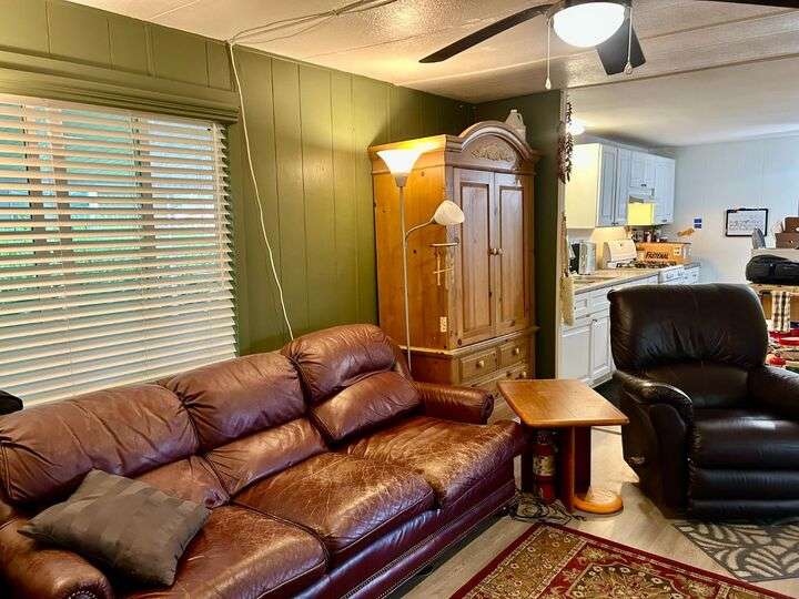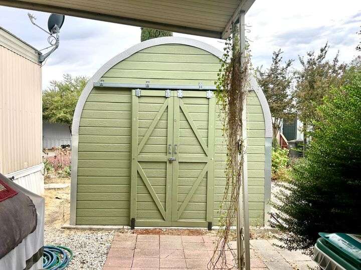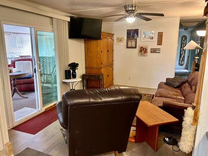 Check out this beautifully upgraded home featuring fresh two-tone interior paint, dual pane, windows with upgraded blinds, central heat and air, and ceiling fans with lights in every room. Enjoy upgraded flooring, a spacious kitchen with newer cabinets and included refrigerator and stackable washer/dryer. Relax on the large covered porch and take in the refreshing delta breeze. The low-maintenance yard includes a 10x12ft Quonset hut shed for extra storage. Located on a quiet 55+ community with a pool, hot tub, and clubhouse offering many activities, this home combines comfort, convenience and an active lifestyle.